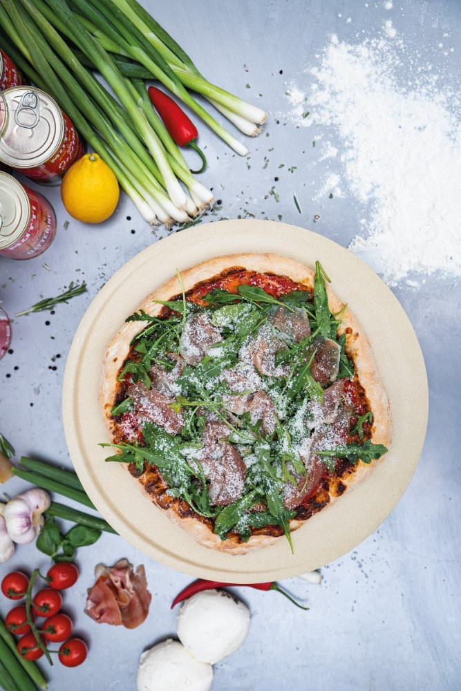 Przygotuj w domu pyszną pizzę jak z pieca dzięki Pizza Stone Deluxe. Kamień ma wygodną podwyższoną krawędź z tyłu co zapobiega przypadkowemu zsunięciu się pizzy z kamienia podczas wkładania go do piekarnika. Kamień wchłania wilgoć, dzięki czemu skórka do pizzy jest cudownie chrupiąca. Podstawa-podgrzewacz pozwala zaserwować pizzę prosto na stół i cieszyć się gorącą pizzą dłużej. Szukasz oryginalnego prezentu dla niej, dla niego? Prezent na urodziny, walentynki, Boże Narodzenie, Dzień Ojca czy Dzień Matki? Cóż, znalazłeś to! Pizza Party Hot Stone to idealny prezent dla każdego miłośnika pizzy. Czyszczenie kamienia do pizzy nie jest trudne, po prostu opłucz wystudzony kamień pod bieżącą wodą. Żeliwną podstawę należy czyścić ściereczką. Zakres temperatur: od 200 C do 250 C.