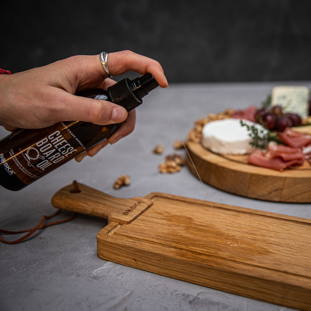 Regularne olejowanie drewna sprawia, że będziesz mógł cieszyć się nim jeszcze dłużej. Przed pierwszym użyciem spryskaj deskę olejem a następnie suchą szmatką wetrzyj olej i pozostaw w pozycji pionowej na noc. Czynność powtarzaj przez trzy dni z rzędu. Deskę oraz inne elementy drewniane konserwuj olejem przynamniej raz w miesiącu. Regularne spryskiwanie deski bezwonnym i bezzapachowym olejem uchroni ją przed pękaniem, plamami oraz pochłanianiem zapachów. Olej może być również stosowany do innych drewnianych elementów narzędzi przeznaczonych do kontaktu żywnością takich jak noże, krajalnice do sera i tarki z drewnianymi uchwytami. Opakowanie: brak. Pojemność - 200ml.