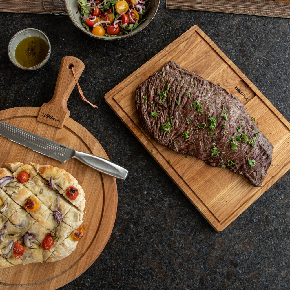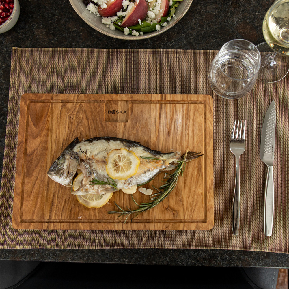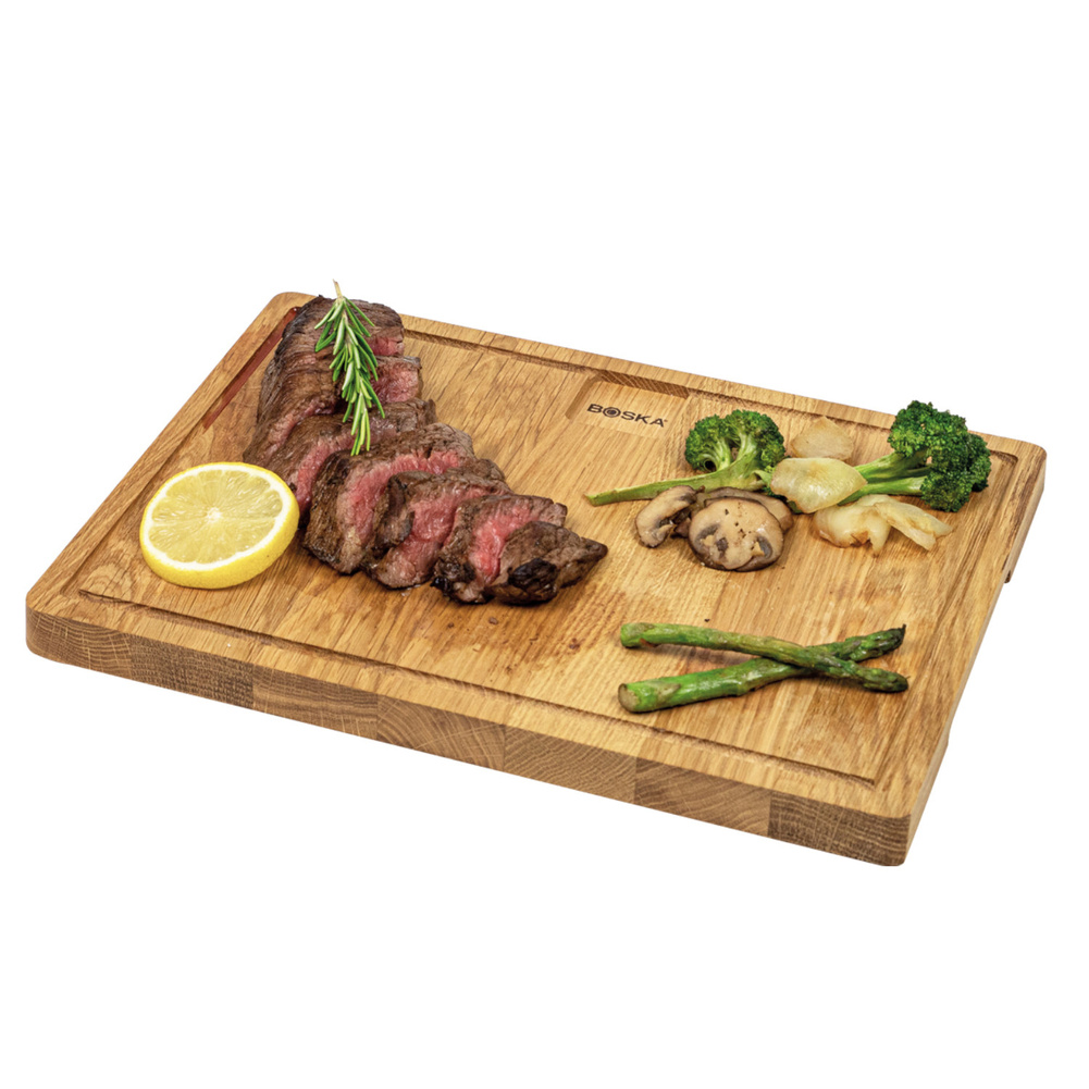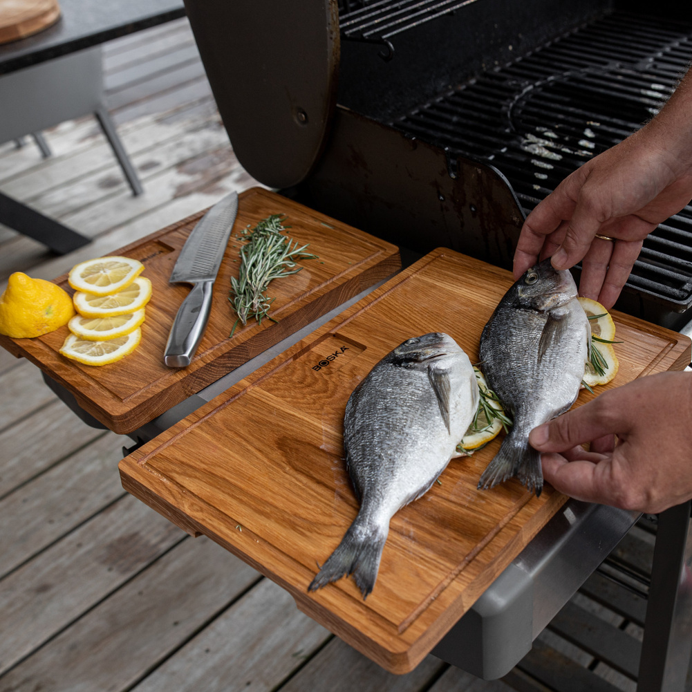 Deska do serwowania Friends M to deska dla smakoszy-estetów! Deska sprawdzi się zarówno do podawania przekąsek, jak i do serwowania steków, burgerów, ryb i innych dań. To deska dla smakoszy-estetów, dla których smak jest tak samo ważny jak podanie. A nic tak nie wyeksponuje serwowanej potrawy jak naturalne, dębowe drewno. Grubość deski to aż 2 cm, na bokach deski znajdują się wgłębienia, które ułatwiają jej przenoszenie. Na obwodzie deski jest żłobienie - poręczny rowek, który zbiera okruchy i soki. To z pewnością pozwoli Ci zaoszczędzić trochę czasu na sprzątaniu! Na tej desce potrawy będą wyglądać jeszcze bardziej smacznie. Idealnie nadaje się na spotkania przy grillu. Deski można użyć do podania steków, czy grillowanych warzyw zamiast talerza. Deska dostępna jest w 3 rozmiarach: S, M, i L. Przed pierwszym użyciem deskę należy solidnie naoliwić, pozwolić by drewno chłonęło olej przez kilka dni. Potem czynność należy powtarzać co jakiś czas. Deskę myć ręcznie z dodatkiem łagodnych detergentów. Opakowanie: brak, etykieta w postaci papierowej opaski.