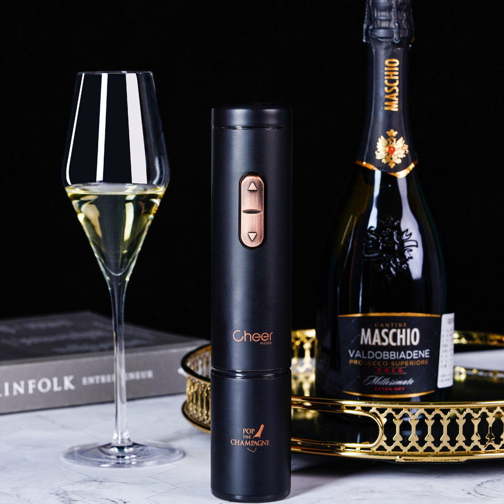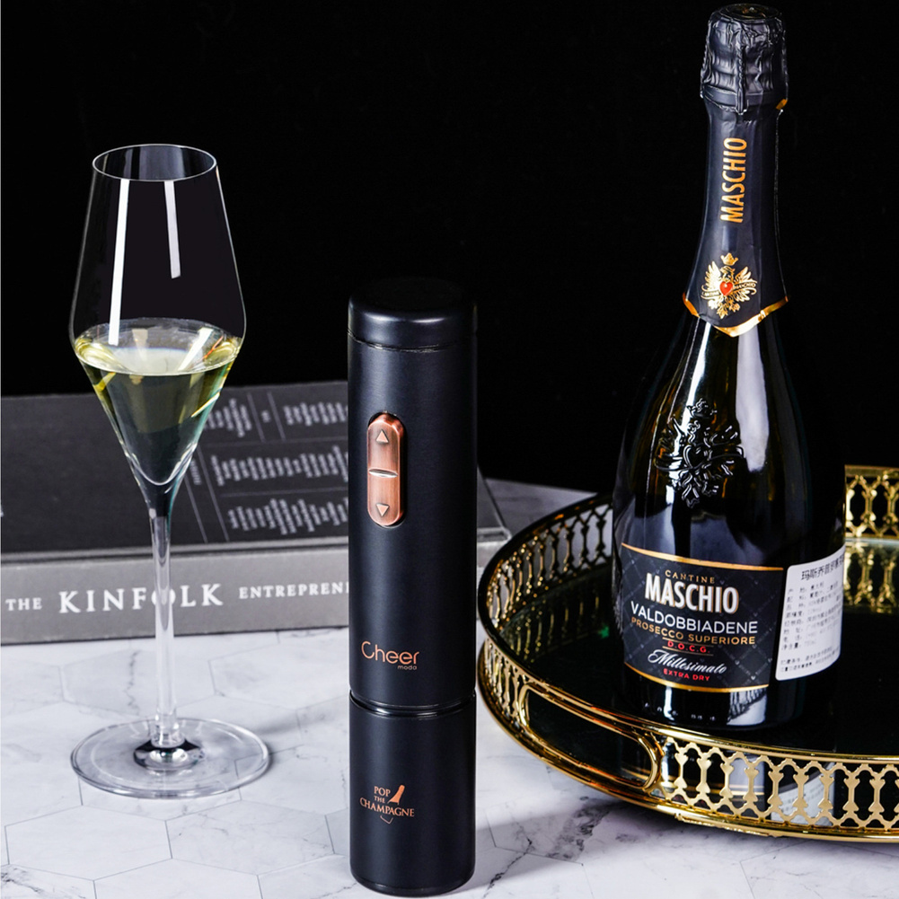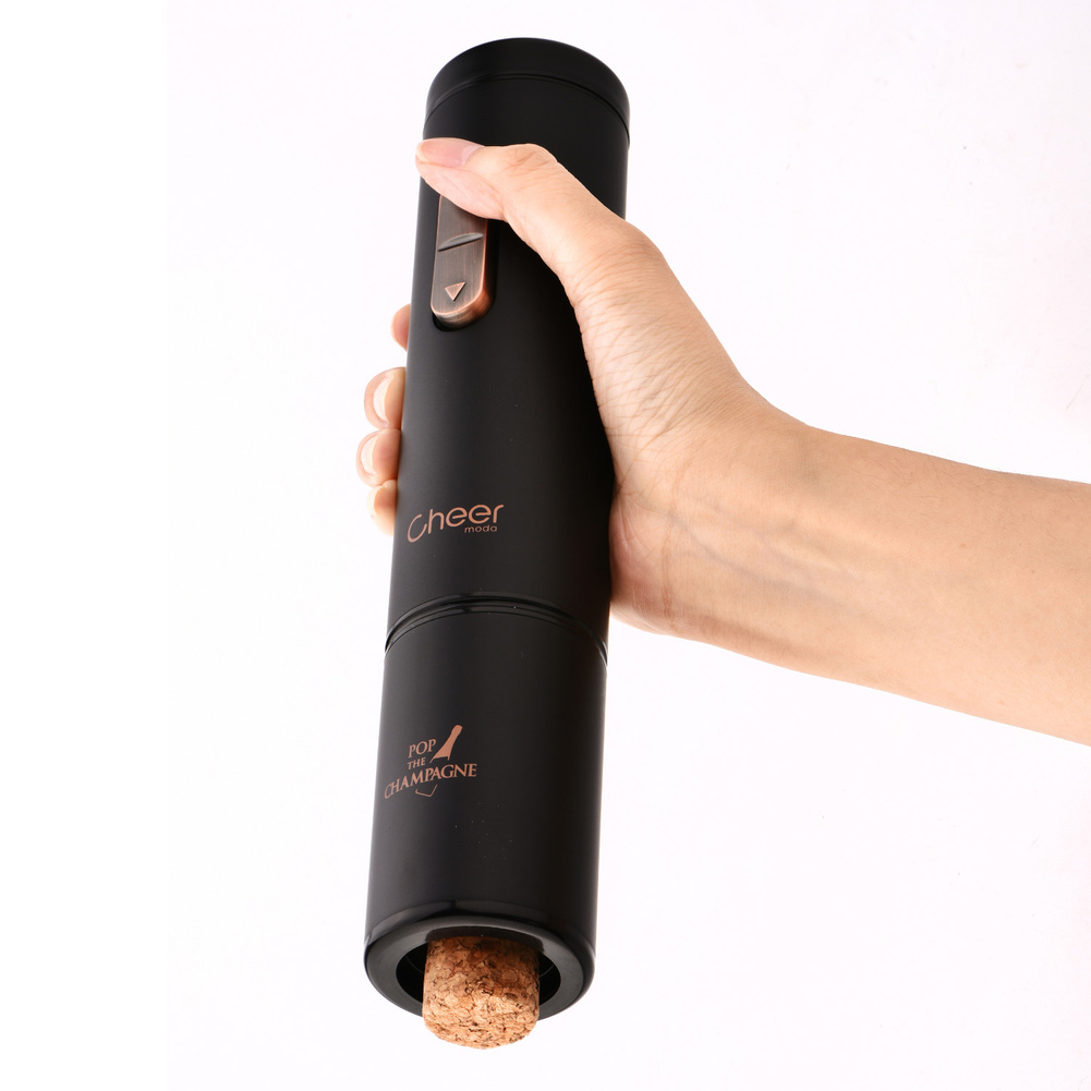 Ten unikalny korkociąg został zaprojektowany w taki sposób, aby umożliwić bezpieczne i łatwe otwieranie butelek szampana lub wina musującego. Dzięki odpowiedniej konstrukcji wewnętrznej, korkociąg jest w stanie sprostać ciśnieniu i uderzeniom korka, które mogą się pojawić w trakcie otwierania butelki. W zestawie z korkociągiem znajduje się korek przeznaczony specjalnie do szampana lub wina musującego, który zachowa świeżość i bąbelki na dłużej, jeśli butelka nie została jeszcze skończona. Ace to po prostu najłatwiejszy i najbezpieczniejszy sposób na otwarcie szampana! Korkociąg jest zasilany 4 bateriami AA, które nie występują w zestawie. Materiał: ABS, PC, stal nierdzewna. Opakowanie: kartonowe pudełko prezentowe.