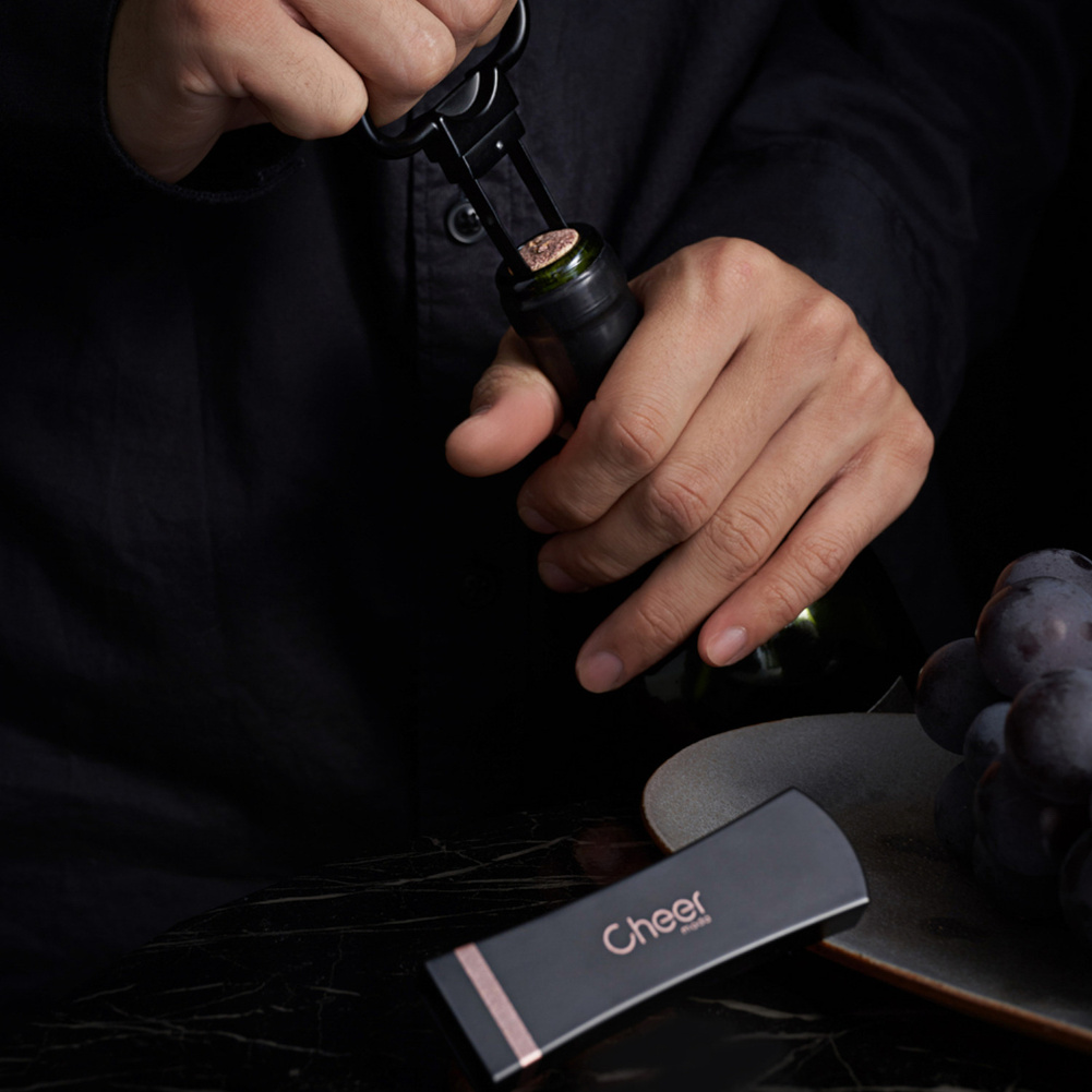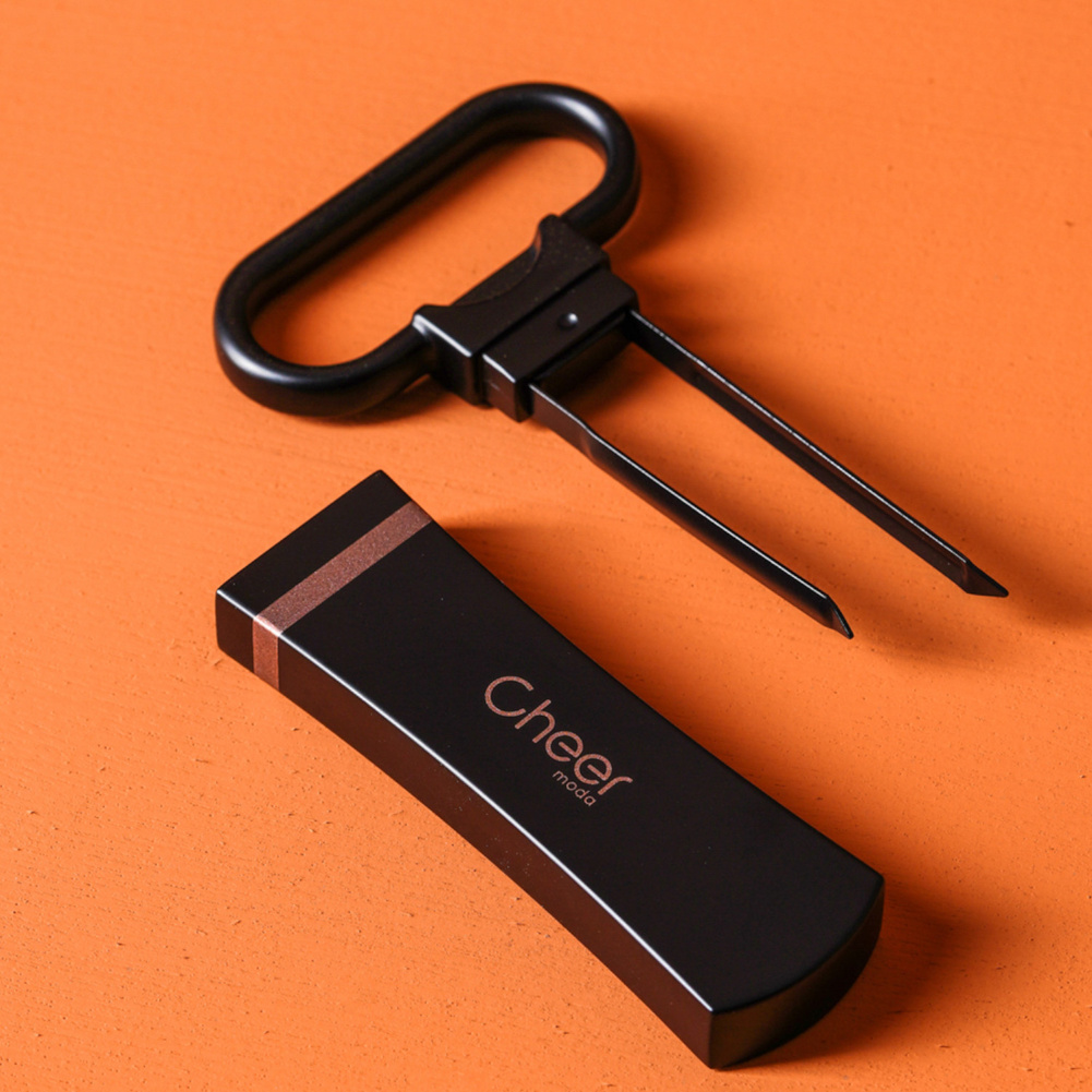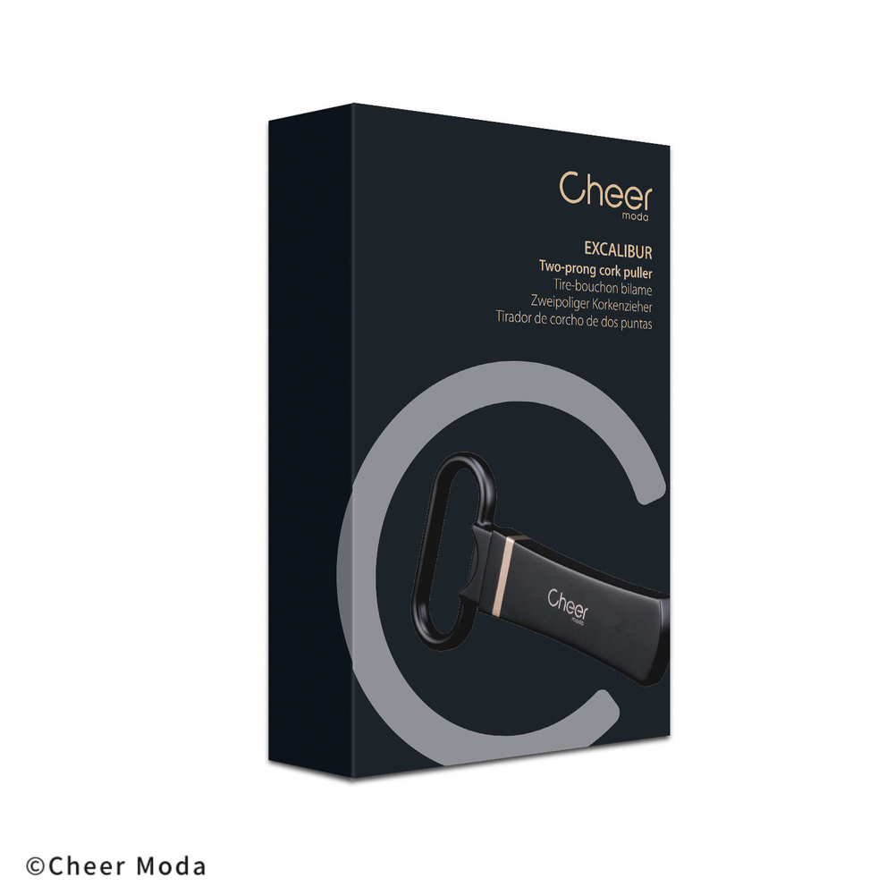 Excalibur to kompaktowy i nowoczesny korkociąg, zaprojektowany przede wszystkim do starych lub słabych korków, umożliwiając usunięcie ich z łatwością i bez zanieczyszczania wina. Wąsy korkociągu zabezpiecza metalowe etui co ułatwia bezpieczne przechowywanie zabezpieczając przed przypadkowym zranieniem. Materiał: stal nierdzewna, stop aluminium. Opakowanie: kartonowe pudełko prezentowe.