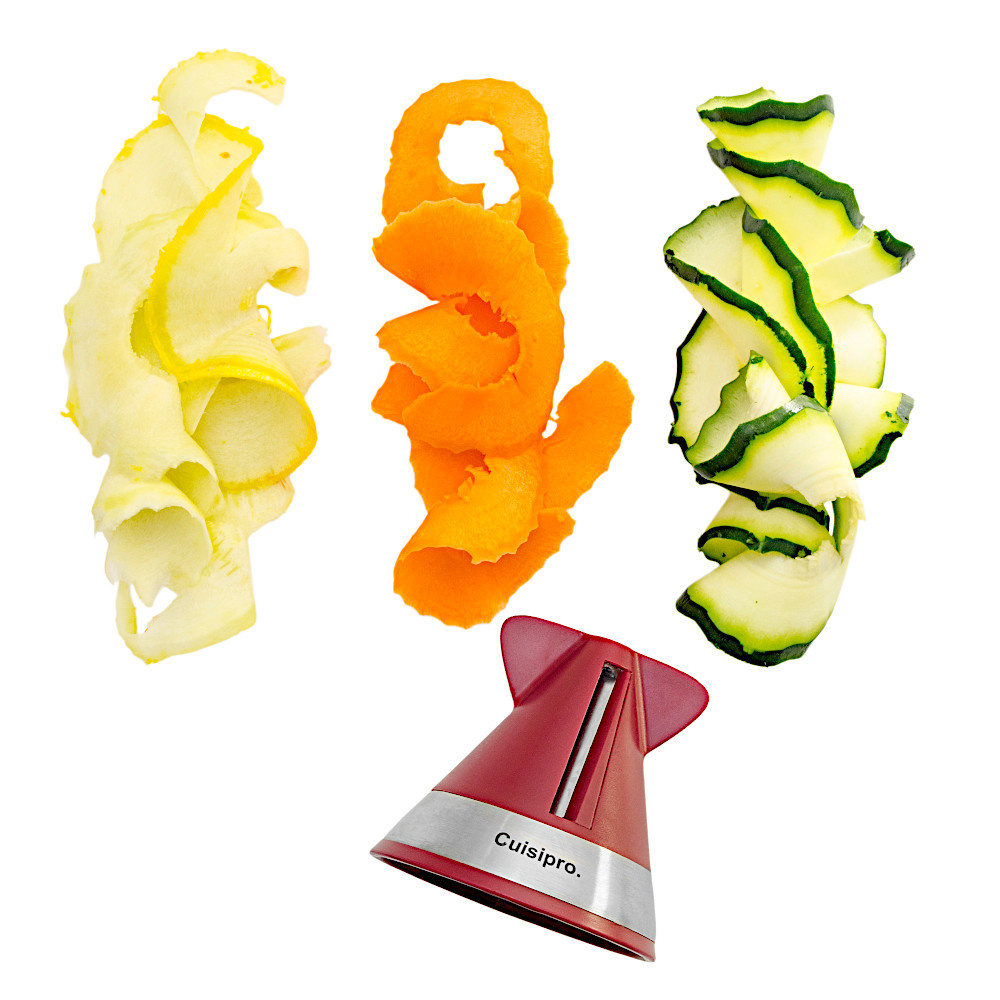 Krajalnica ma kształt stożka, do którego wkłada się warzywo, np. cukinię, ogórek, marchewkę, pasternak. Działa podobnie, jak temperówka. Krajalnicę lub warzywo należy obracać, a zamontowane wewnątrz ostrze pokroi je na wybrany kształt. Krajalnica ma niewielkie rozmiary, a dzięki niej szybko przyrządzisz surówkę, pokropisz warzywa na zdrowy makaron, udekorujesz kanapki czy sałatkę. Twoje posiłki staną się nie tylko bardziej zdrowe, ale też kolorowe, pełne różnych smaków i kształtów.