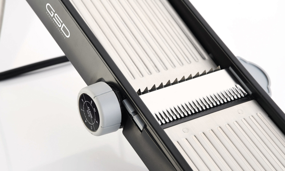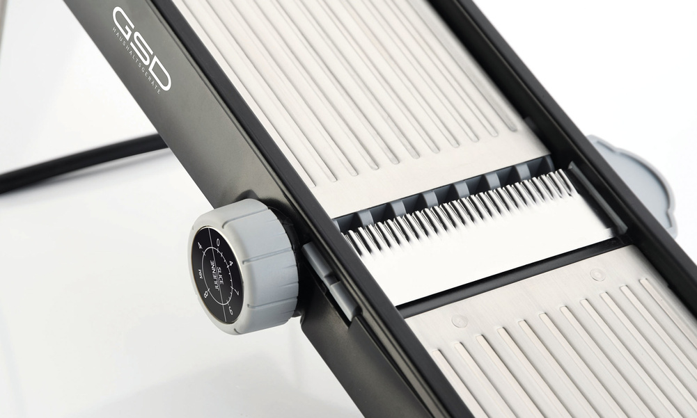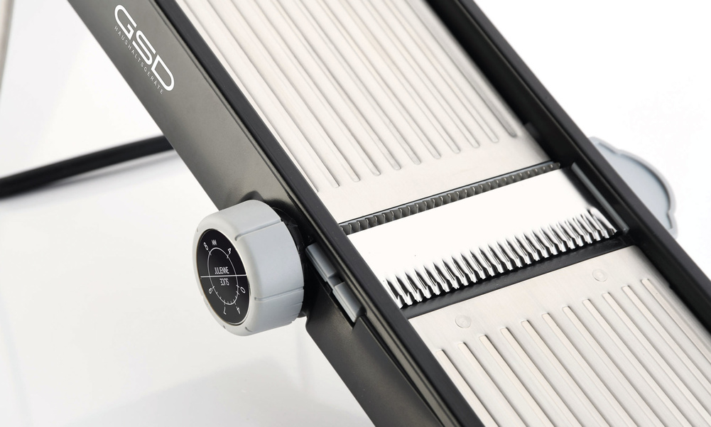 Profesjonalna szatkownica pozwala na szybkie, łatwe i bezpieczne krojenie warzyw w różne kształty: plastry, frytki, paski, falowane plastry. Jest to możliwe dzięki zintegrownym z szatkownicą wkładom krojącym ze stali nierdzewnej. Antypoślizgowa podstawa oraz uchwyt wraz z osłoną na palce zapewniają bezpieczne użycie. Powierzchnia do cięcia szatkownicy wykonana jest z wysokiej jakości stali nierdzewnej oraz solidnej ramy z tworzywa sztucznego. Szatkownica może kroić plastry o grubości od 1mm do 9mm, plastry Julienne o grubości 4mm, a frytki o grubości 8mm. Zalecane jest mycie ręczne. Produkt można myć w zmywarce.