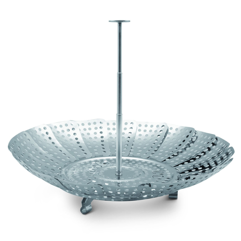 Łatwy do złożenia, wysokiej jakości koszyk ze stali nierdzewnej do gotowania na parze. Może być używany w garnkach o średnicy 14cm. Koszyk wyposażono w teleskopowy uchwyt do wkładania i wyjmowania go z garnka w łatwy sposób. Dzięki możliwości odłączenia uchwytu od koszyka, produkt nie zajmie w szafce zbyt wiele miejsca. Koszyk jest idealnym rozwiązaniem dla osób, które chcą gotować zdrowe posiłki bez użycia nadmiernych ilości tłuszczu. Świetnia sprawdzi się w przyrządzaniu warzyw, ziemniaków czy ryb. Należy pamiętać, że koszyk jest przeznaczony do garnków o minimalnej średnicy 14cm. Można myć w zmywarce. Produkt może nosić ślady produkcyjne, które w żaden sposób nie wpływają na jego walory użytkowe. Materiał: stal nierdzewna. Wymiary brutto: 19x15x6cm. Wymiary netto: 14,2x14,2x7,5cm. Waga brutto: 0,175kg. Waga netto: 0,166kg.