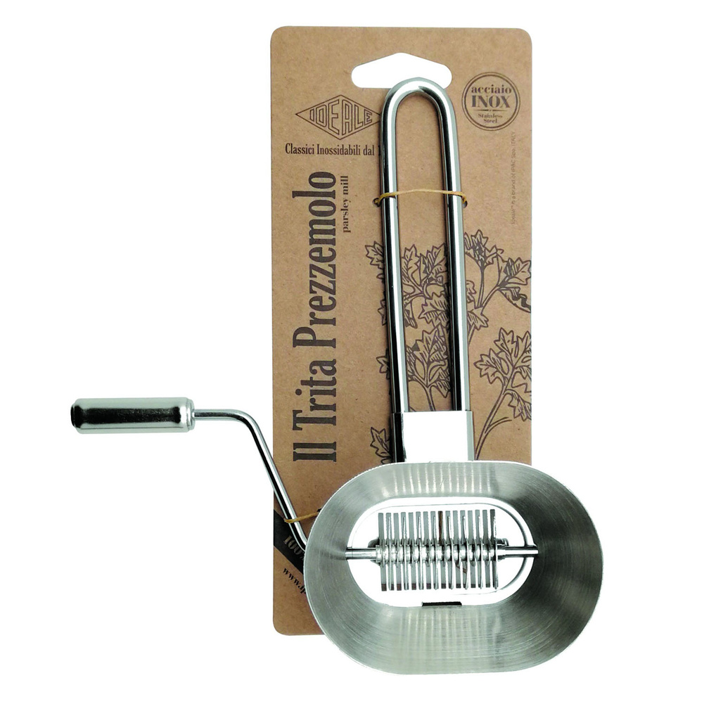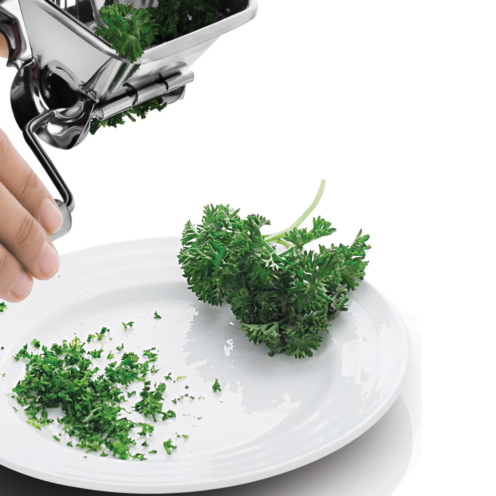 Młynek do pietruszki ze stali nierdzewnej stworzony do bezpiecznego cięcia pietruszki, rozmarynu, bazylii, szałwii i innych ziół bezpośrednio do Twoich potraw. Łatwy w czyszczeniu. Można myć w zmywarce. Produkt może nosić ślady produkcyjne, które w żaden sposób nie wpływają na jego walory użytkowe. Materiał: stal nierdzewna. Wymiary netto: 19,2x16x6,4cm. Wymiary brutto: 21x16x6,4cm. Waga brutto: 0,161kg. Waga netto: 0,154kg.