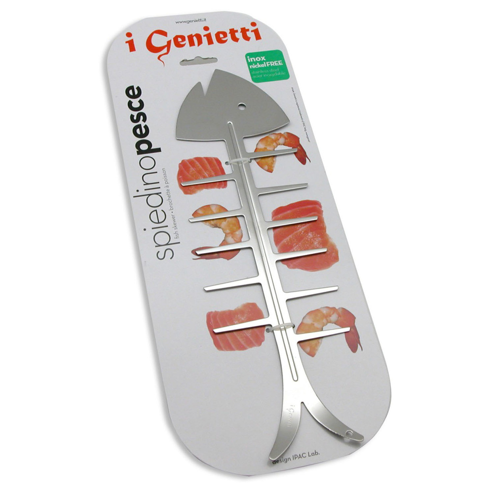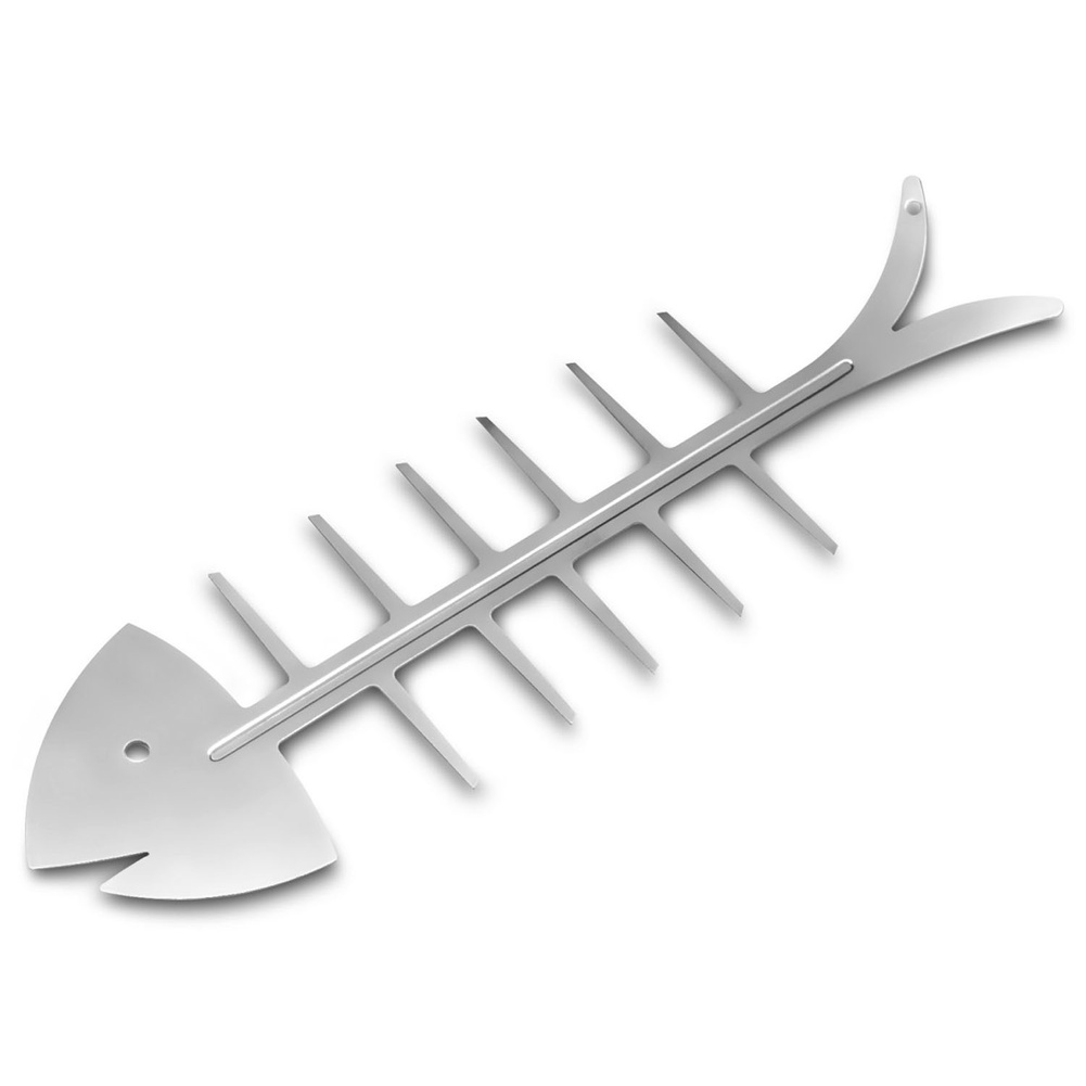 Nadziewacz ze stali nierdzewnej w kształcie ryby do serwowania grillowanej ryby w oryginalny sposób. Dzięki płaskiej i rozłożystej konstrukcji zachowuje się stabilnie podczas grillowania oraz zapewnia równe smażenie wszystkich kawałków mięsa i łatwiejsze ich zdejmowanie z nadziewacza. Zakrzywiony ogon pozwala na bezpieczny chwyt zarówno podczas gotowania i serwowania: idealny do grilla i piekarnika, do wszystkich ryb – łososia, tuńczyka, krewetek czy kałamarnicy. Wielokrotnego użytku, higieniczny i łatwy w czyszczeniu. Można myć w zmywarce. Produkt może nosić ślady produkcyjne, które w żaden sposób nie wpływają na jego walory użytkowe. Materiał: stal nierdzewna. Wymiary brutto: 33,8x13x1,5cm. Wymiary netto: 29,7x9x1,4cm. Waga brutto: 0,098kg. Waga netto: 0,080kg.