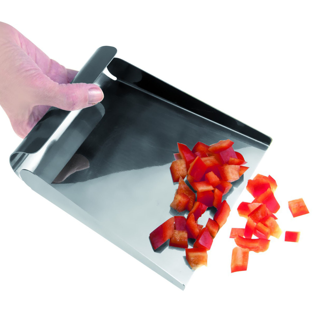 Wielofunkcyjna szufelka ze stali nierdzewnej pomoże Ci uporządkować Twój kuchenny blat. Idealnie sprawdzi się w zgarnianiu poszatkowanych warzyw, czosnku lub pietruszki i czyszczeniu blatu z okruchów i pozostałości jedzenia. Można myć w zmywarce. Produkt może nosić ślady produkcyjne, które w żaden sposób nie wpływają na jego walory użytkowe. Materiał: stal nierdzewna. Wymiary brutto: 21,5x16x3,7cm. Wymiary netto: 15x3,6x15cm. Waga brutto: 0,147kg. Waga netto: 0,124kg.