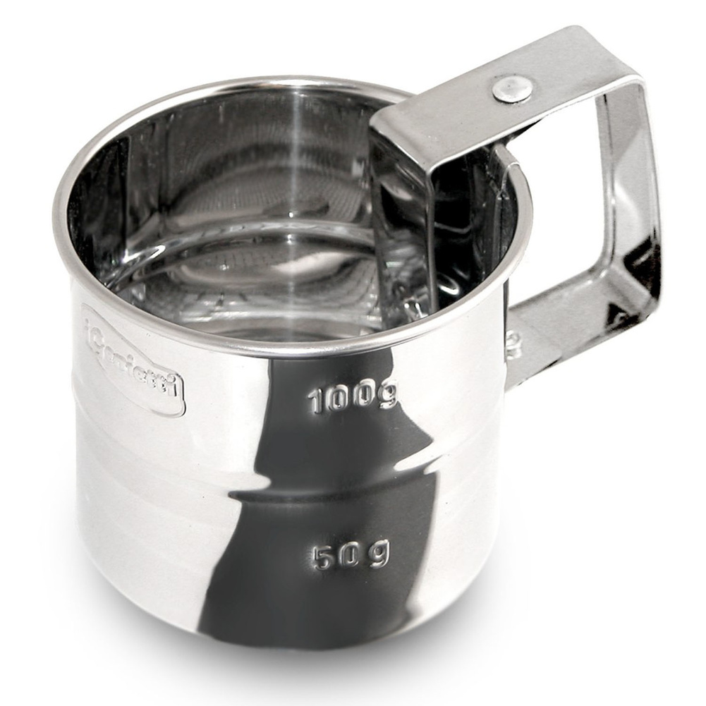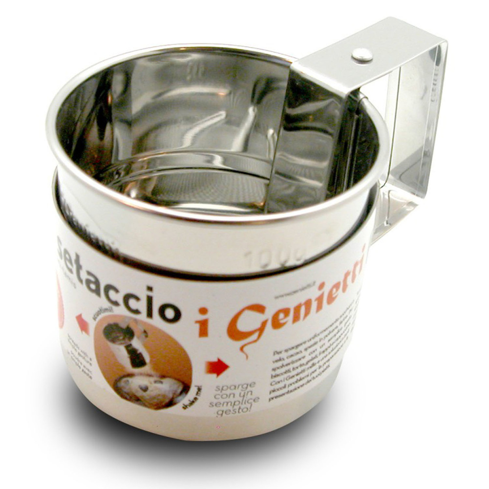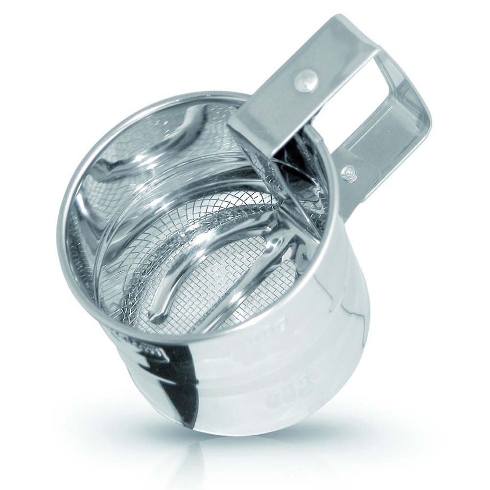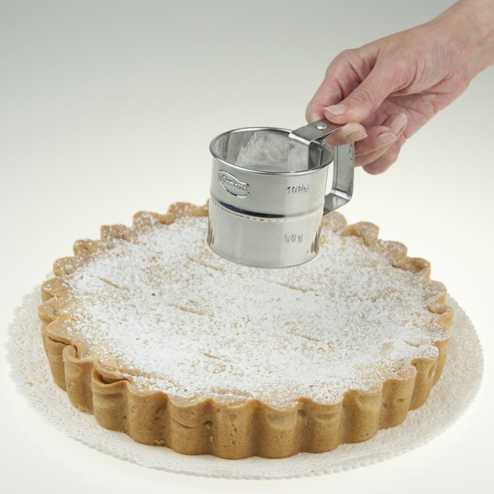 Mini sitko ze stali nierdzewnej do równomiernego rozprowadzania cukru pudru, kakao, przypraw, mąki. Można przy jego pomocy obsypać biszkopty, ciastka, ciasta, lody czy cappuccino. Można myć w zmywarce. Produkt może nosić ślady produkcyjne, które w żaden sposób nie wpływają na jego walory użytkowe. Materiał: stal nierdzewna. Wymiary netto: 7x5,8x10cm. Waga brutto: 0,048kg. Waga netto: 0,046kg.