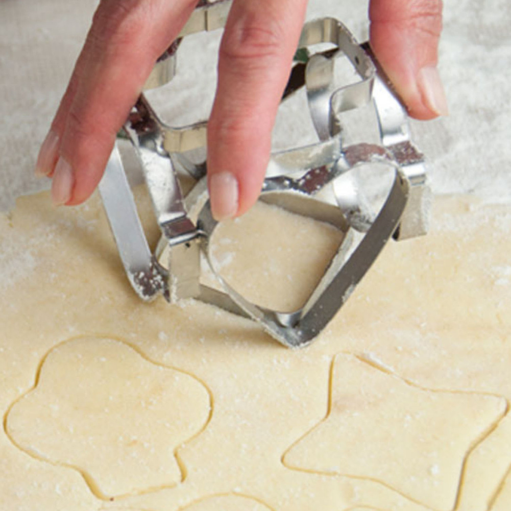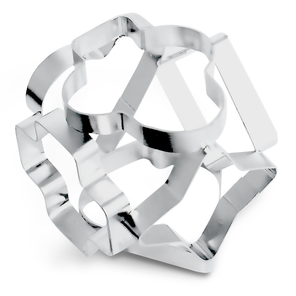 Sześć foremek o różnych kształtach do wycinania ciasteczek, które znajdują się zawsze pod ręką. W kuli znajduje się kwadrat, kwadratowy kwiat, gwiazdka, serce, trefl i pik. Można myć w zmywarce. Produkt może nosić ślady produkcyjne, które w żaden sposób nie wpływają na jego walory użytkowe. Materiał: stal nierdzewna. Wymiary brutto: 18x7,5x7,3cm. Wymiary netto: 7x7x7cm. Waga brutto: 0,072kg. Waga netto: 0,062kg.