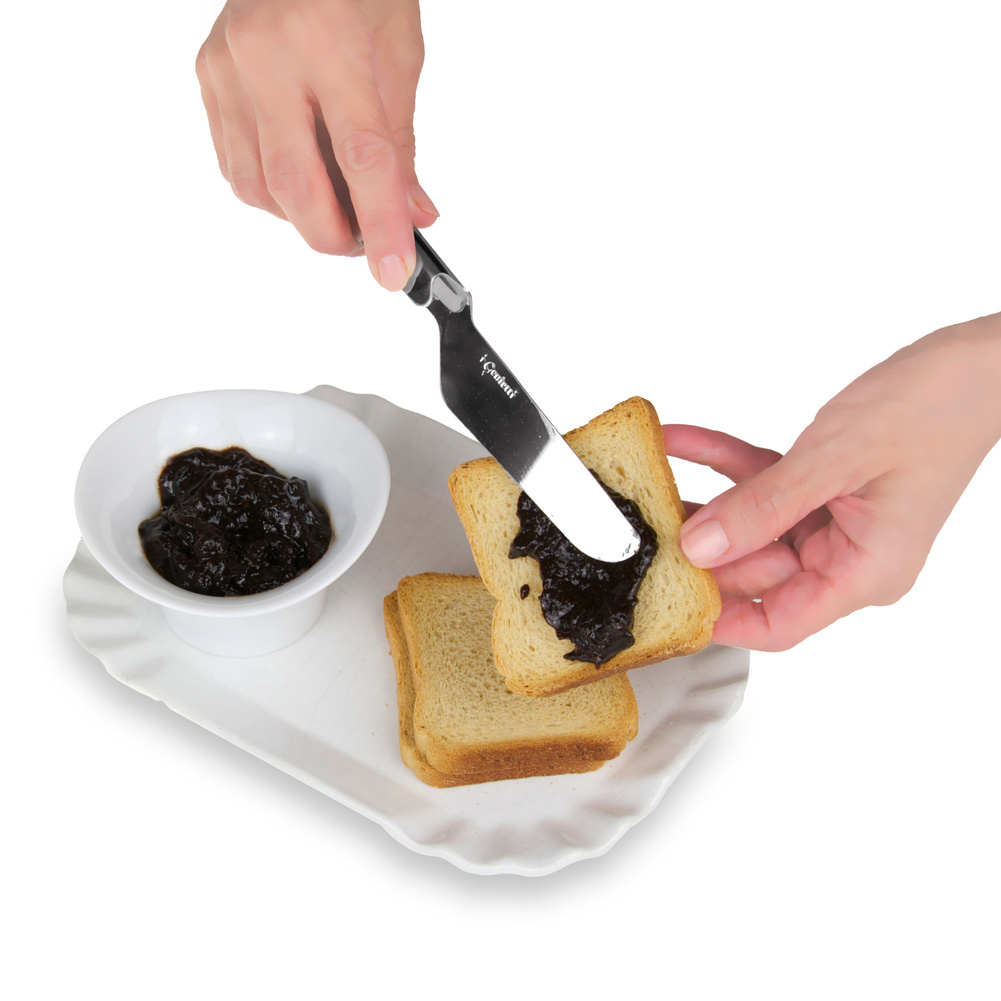 Specjalnie ukształtowana rękojeść trzyma z dala od blatu ostrze do smarowania. Nożykiem rozsmarujesz masło, dżem, czekoladę i kremy a odłożony właściwą stroną sprawi, że Twój blat pozostanie czysty. Materiał: stal nierdzewna. Można myć w zmywarce. Opakowanie: tekturowa zawieszka.