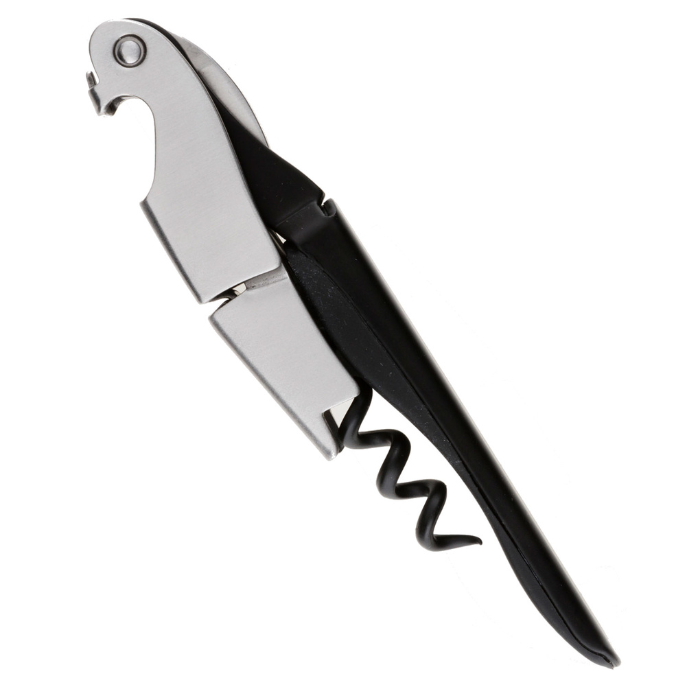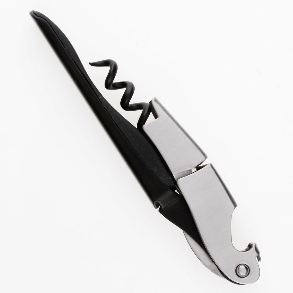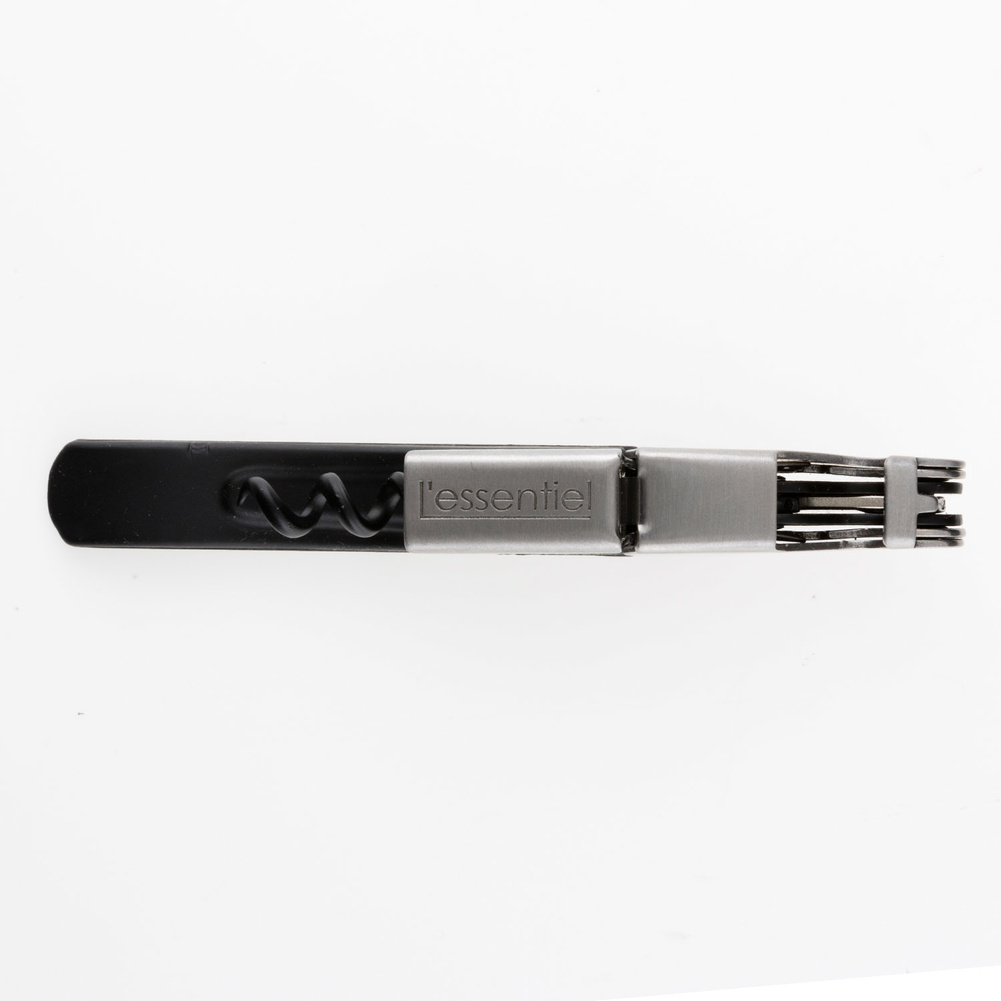 Zgodnie z nazwą L’Essentiel jest prostym, niedrogim i wydajnym korkociągiem, który jednocześnie cieszy oko śmiałymi liniami. Miłym dodatkiem jest przyjemny w dotyku, miękki materiał soft touch na spodniej części rękojeści, zdecydowanie poprawiający wygodę użytkowania. Korkociąg został wyposażony w system double step wykonany ze stali nierdzewnej. Wierzchnia część rękojeści została wykonana z malowanego metalu, a metalowy szpikulec został dodatkowo pokryty tefalem. Opakowanie to solidna kartonowa zawieszka.