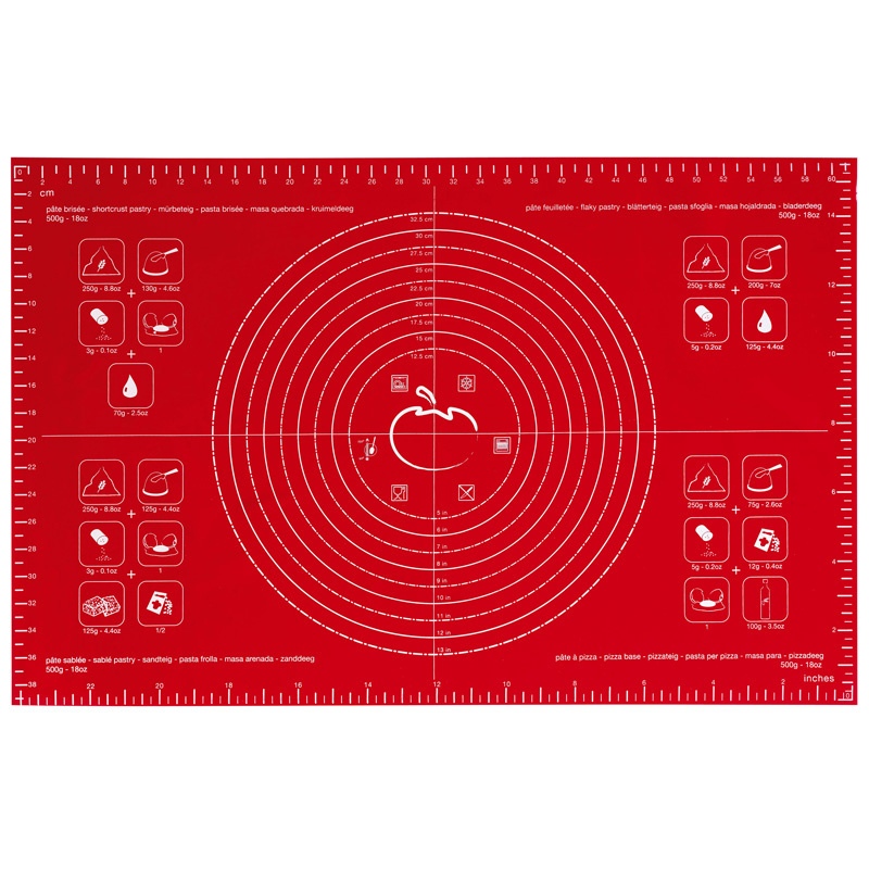 Stolnica wykonana z silikonu i włókien szklanych, nie przylega do ciasta, jest elastyczna. Może również służyć jako mata do pieczenia.