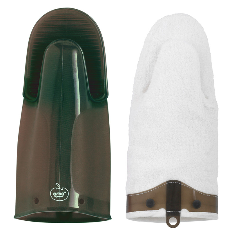 Rękawica ma fakturę wewnątrz, dzięki temu naczynie nie wyśliźnie się. Elastyczny silikon łatwo przyjmuj formę i gesty dłoni.