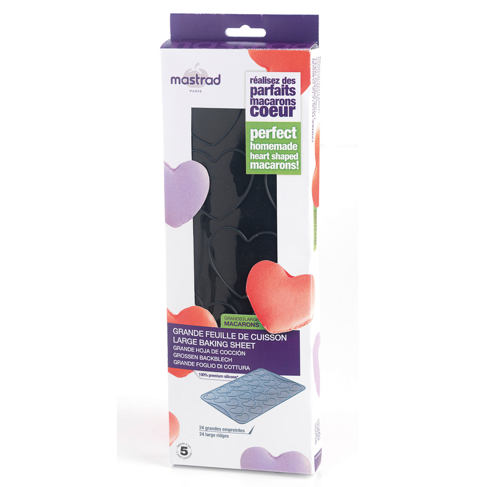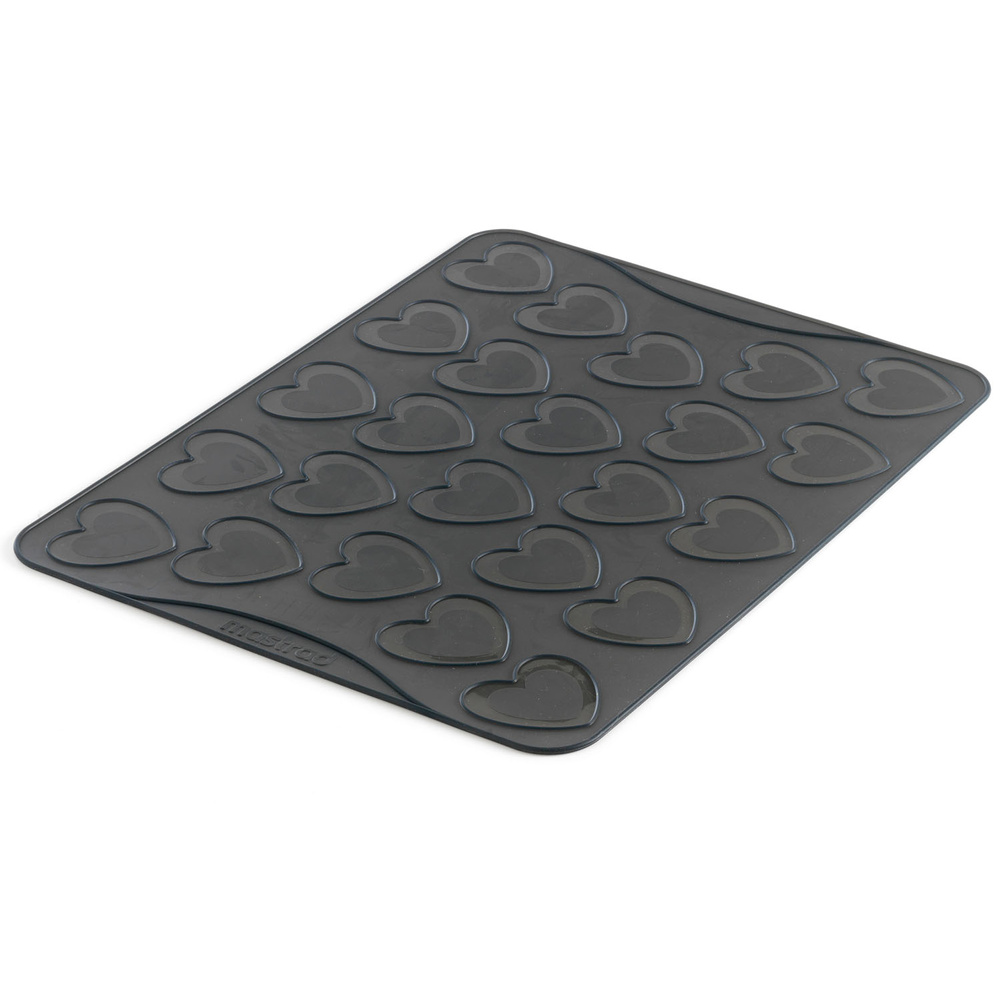 Silikonowa mata do makaroników w kształcie serca na 24 ciasteczka! Idealne makaroniki łatwiejsze do upieczenia niż Ci się zdaje. Mata ułatwi precyzyjne nałożenie odpowiednich porcji ciasta, upieczenie, a następnie zdjęcie. Na macie rozrysowane są wyraźne okręgi, dzięki którym łatwo nałożyć ciasto makaronikowe, a lekko uniesione krawędzie zapobiegają rozpłynięciu się masy w trakcie pieczenia. Matę można również używać na gładkiej stronie do pieczenia ciasteczek, bez, ptysi i innych wypieków. Silikon jest wytrzymały na niskie i wysokie temperatury (od -40 do 220 stopni). Można myć w zmywarce.