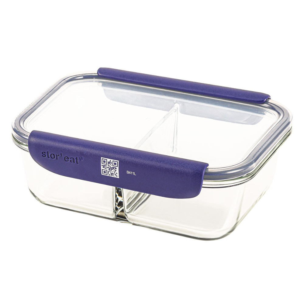 Pobierz aplikację, skanuj kody QR i zarządzaj swoimi zapasami przy pomocy aplikacji BE SMART. Pojemniki SMART pozwolą Ci optymalnie wykorzystać zapasy bez marnowania żywności, z szacunku do jej producentów i korzyścią dla planety. W celu zainstalowania aplikacji Stor’eat na swoim telefonie, wyszukaj ją w sklepie Google play, App Store lub na stronie www.stor-eat.com. Aplikacja pomoże Ci w codziennym zarządzaniu Twoimi zapasami jedzenia. Skanuj przy jej pomocy kody kreskowe na produktach oraz kody QR dołączone do produktów marki Mastrad. Po zeskanowaniu kodu kreskowego produktu spożywczego, aplikacja zazwyczaj samodzielnie rozpoznaje rodzaj produktu. W razie nierozpoznania konkretnego produktu, należy samodzielnie wprowadzić dane na jego temat do aplikacji. Po wprowadzeniu daty przydatności do spożycia, można ustawić sobie przypomnienie, dzięki któremu już nigdy nie zapomnisz zjeść swoich ulubionych potraw i przekąsek zanim się one popsują. Aplikacja Stor’eat jest całkowicie darmowa. Pojemniki są wykonane ze szkła borokrzemowego odpornego na ekstremalne temperatury. Szkło jest materiałem neutralnym, nie przyjmuje zapachów i jest higieniczne. Materiał: pojemnik szkło borokrzemowe zakres temperatur od -20 C do 400 C, pokrywa tworzywo BPA Free, uszczelka silikon, klamry zamykające plastik. Pojemnik i pokrywę można myć w zmywarce. Klamry należy myć ręcznie , mycie w zmywarce może uszkodzić kody QR. Klamry i pokrywa nie nadają się do użycia w piekarniku i w kuchence mikrofalowej.
