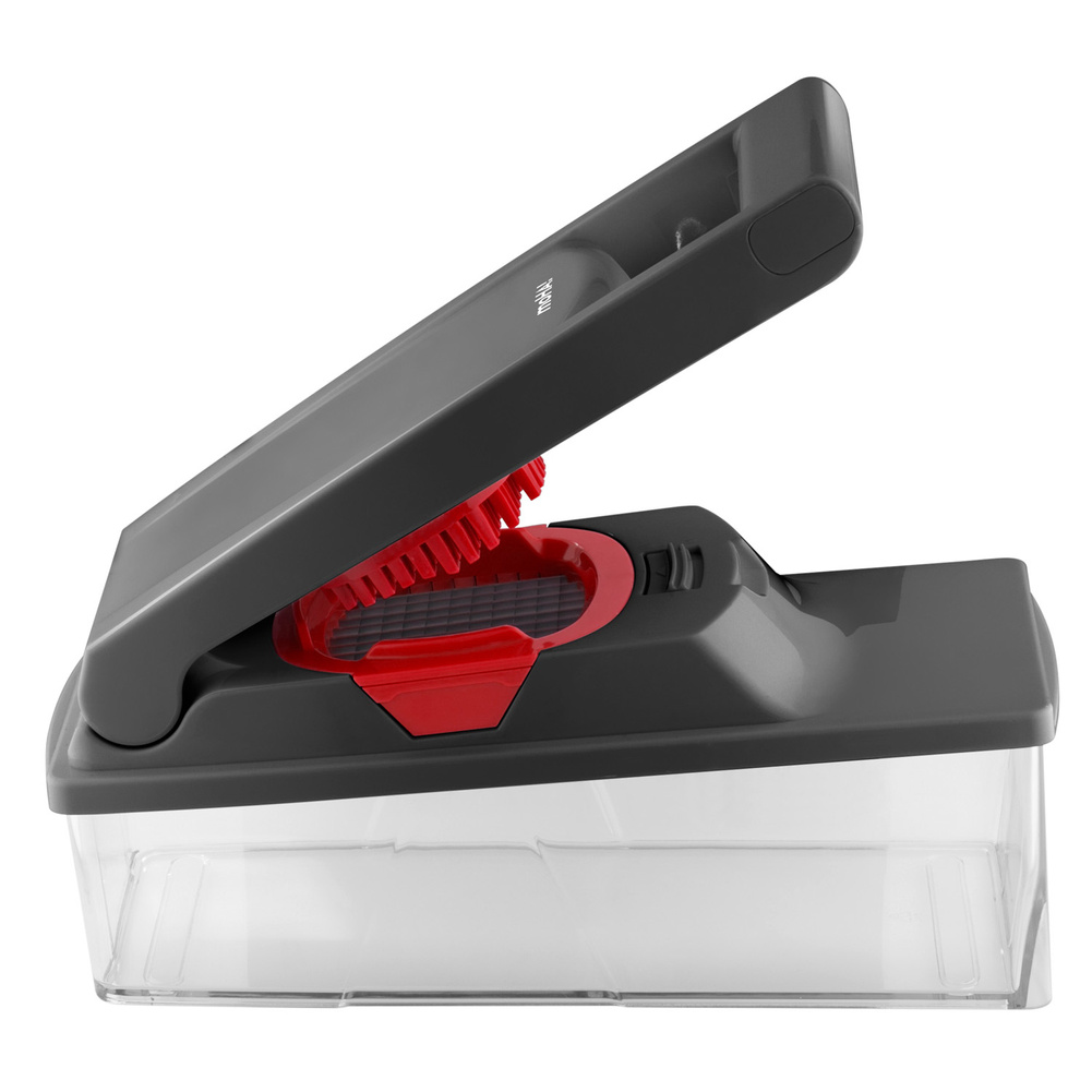 Szatkownica VERDURA do frytek i nie tylko! Dzięki 3 wymiennym dyskom - nożom szybko i bezpiecznie pokroisz warzywa i owoce. A pojemny 1,5 l pojemnik ułatwi cięcie, zminimalizuje bałagan i zbierze poszatkowane warzywa. Z szatkownicą pokroisz nie tylko ziemniaki na frytki, ale ogórka, grzyby, pomidory, cukinię i wiele innych warzyw i owoców. W zestawie: pojemnik z pokrywą, ostrze do cięcia w paski o rozstawie 6 mm, długości do 3 i 4 cm mierzonym w najszerszym miejscu, ostrze do cięcia w słupki 0,9 cm + przepychacz, ostrze do cięcia w słupki 0,6 cm + przepychacz, 2 grzebyki do czyszczenia o rozstawie 0,6 i 0,9 cm.