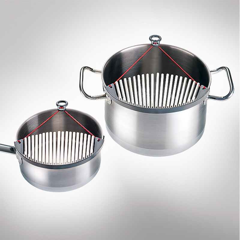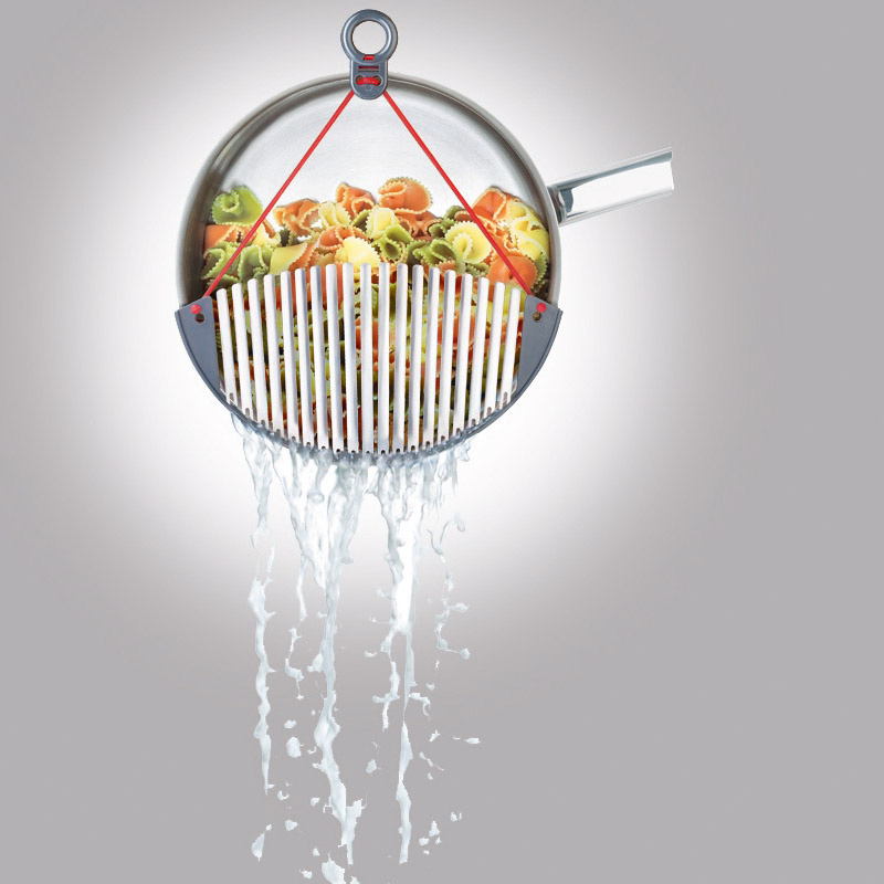 Innowacyjne rozwiązanie - sitko do odcedzania zakładane na garnek. Sitko zostało wykonane ze stali nierdzewnej, co sprawia, że jest trwałe i odporne na wysoką temperaturę. Sitko, które ułatwia pracę w kuchni. Wystarczy założyć je na rant garnka, by szybko odcedzić jego zawartość: makaron, ryż, kaszę, ziemniaki i inne warzywa. Bez obawy, że zawartość znajdzie się w zlewie, bez problemu z durszlakiem. Sposób użycia sitka jest niezwykle prosty. Metalową część należy wsunąć na brzeg garnka, dołączoną elastyczną linkę z uchwytem należy naciągnąć i zaczepić o przeciwległy brzeg. Teraz można już szybko i bezpiecznie odcedzać. Sitko pasuje do garnków o średnicy od 18 do 24 cm. Można myć w zmywarce. Materiał: stal nierdzewna inox, tworzywo sztuczne POM i silikon