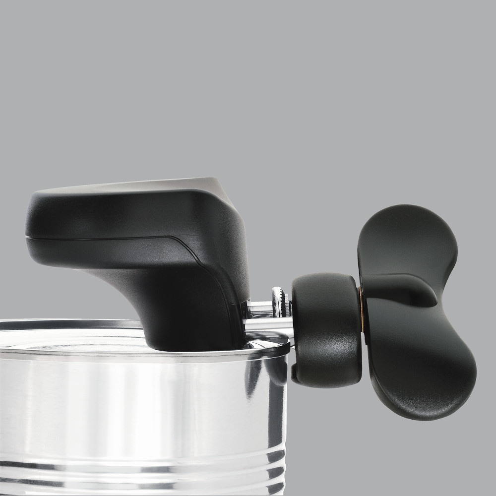 Otwieracz do puszek PALM to bezpieczeństwo i łatwość użycia. Otwieracz sam ustawia się na odpowiedniej pozycji, co ułatwia otwieranie puszek. Użycie otwieracza jest bardzo proste - należy przyłożyć go do brzegu puszki i przekręcać pokrętłem. Jest ono duże i wygodne, więc nie ma obawy, że ręka się z niego zsunie. Otwieracz tnie szybko i pewnie, nie pozostawia ostrych i poszarpanych krawędzie, co zapobiega skaleczeniom. Nie należy myć w zmywarce. Przybliżone wymiary: wysokość 6 cm, długość 12 cm, szerokość 8 cm Przybliżone wymiary brutto: wysokość 15 cm, długość 8 cm, szerokość 5 cm Przybliżona waga brutto: 0,105 kg Materiał: stal nierdzewna, stal, tworzywo sztuczne ABS
