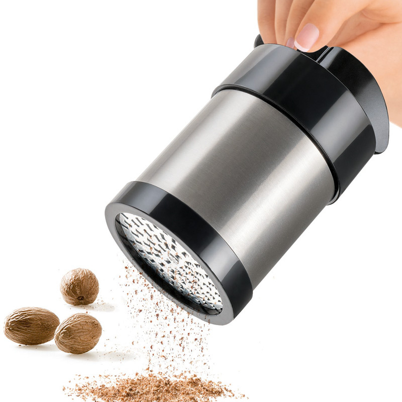 Dzięki zupełnie nowej konstrukcji, prowadzenie gałki nie wymaga silnego dociskania, aby ją utrzeć. Ponadto nie pozostają w młynku niestarte resztki. Nowego rodzaju ostrza tnące jeszcze lepiej i znacznie szybciej rozdrabniają gałkę. Młynek pozwala na ucieranie 4 gałek jednocześnie. Wersja z korpusem ze stali nierdzewnej.