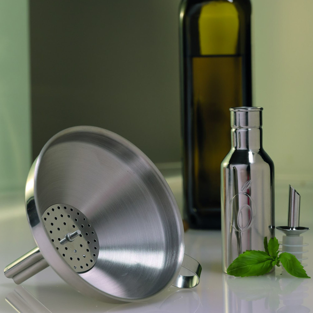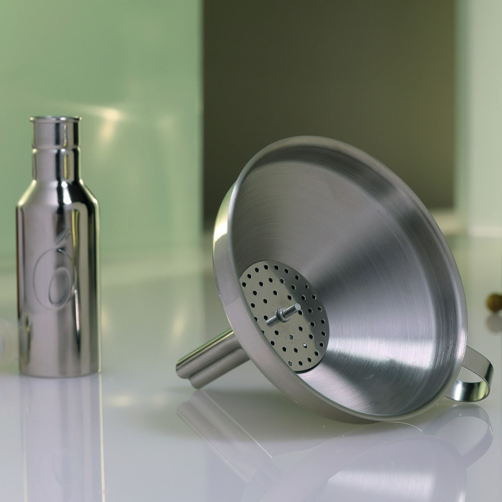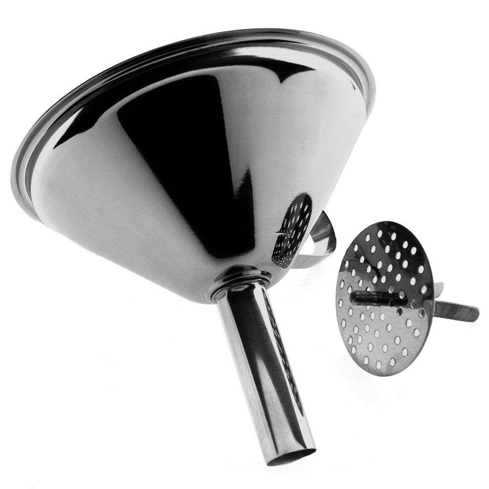 Lejek ze stali nierdzewnej z filtrem do nalewania czystego płynu oddzielonego grubszych frakcji. Łatwy w czyszczeniu. Można myć w zmywarce. Materiał: stal nierdzewna. Wymiary netto: 15x11,5x12,7cm. Wymiary brutto: 20x11,5x12,7cm. Waga brutto: 0,107kg