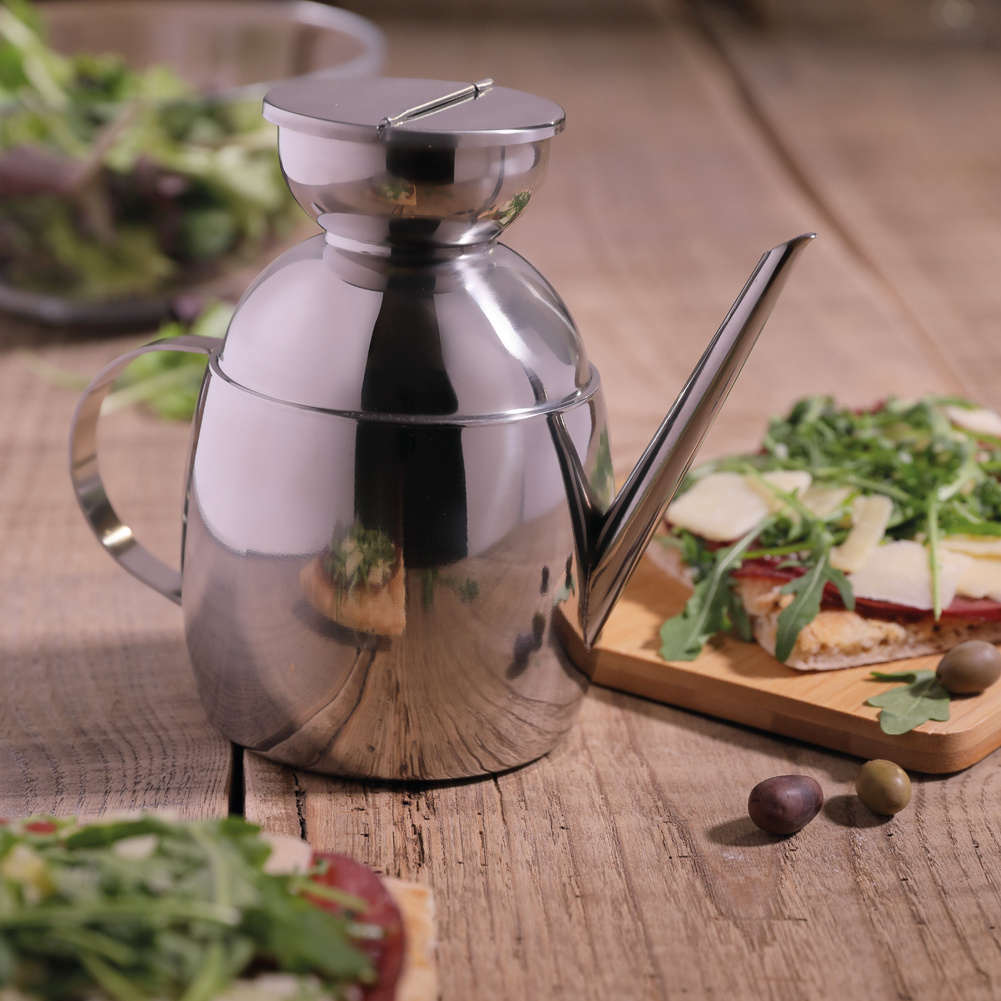 Butelka 700ml Tosca na oliwę ze stali nierdzewnej o tradycyjnym kształcie. Przykrywka umożliwia łatwe napełnianie i czyszczenie naczynia. Stal nierdzewna zachowuje organoleptyczne właściwości oliwy poprzez maksymalną ochronę przed światłem, powietrzem oraz zapachami, zapobiega utlenianiu oraz pozostałym procesom degradacyjnym. Można myć w zmywarce. Materiał: stal nierdzewna. Opakowanie: torebka foliowa. Pojemność: 700 ml.