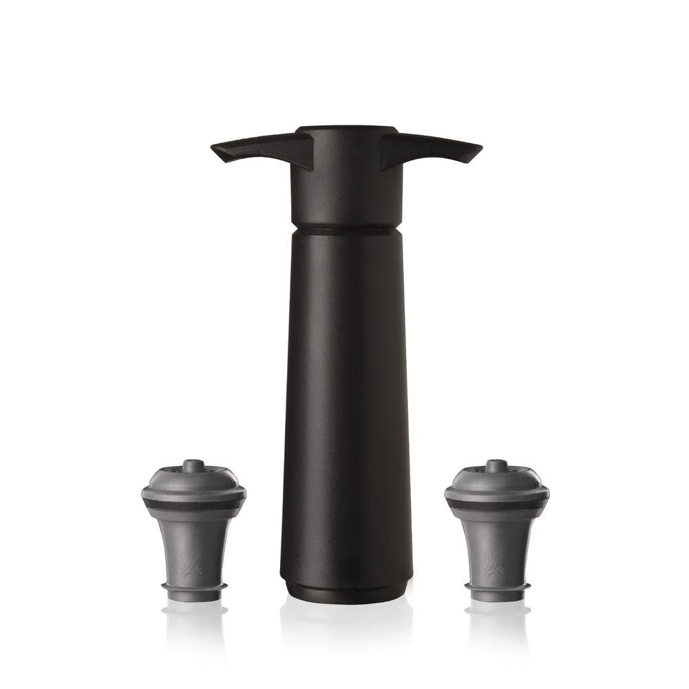 Komplet zawierający pompkę próżniową do wina oraz 2 korki próżniowe. Korpus pompki został wykonany z tworzywa sztucznego w kolorze czarnym.