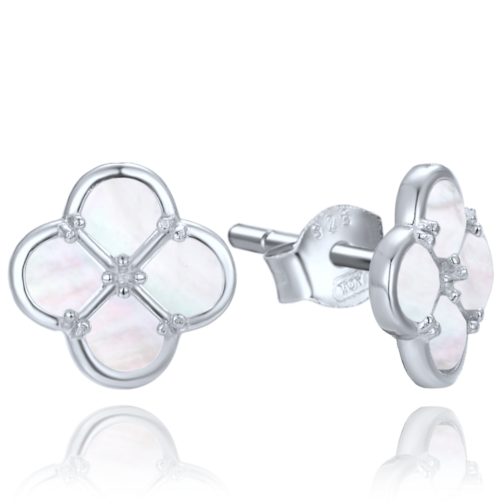 MINET Srebrne kolczyki koniczyna z białą masą perłową