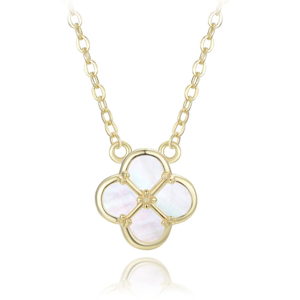 MINET Pozłacany srebrny naszyjnik koniczyna z białą masą perłową