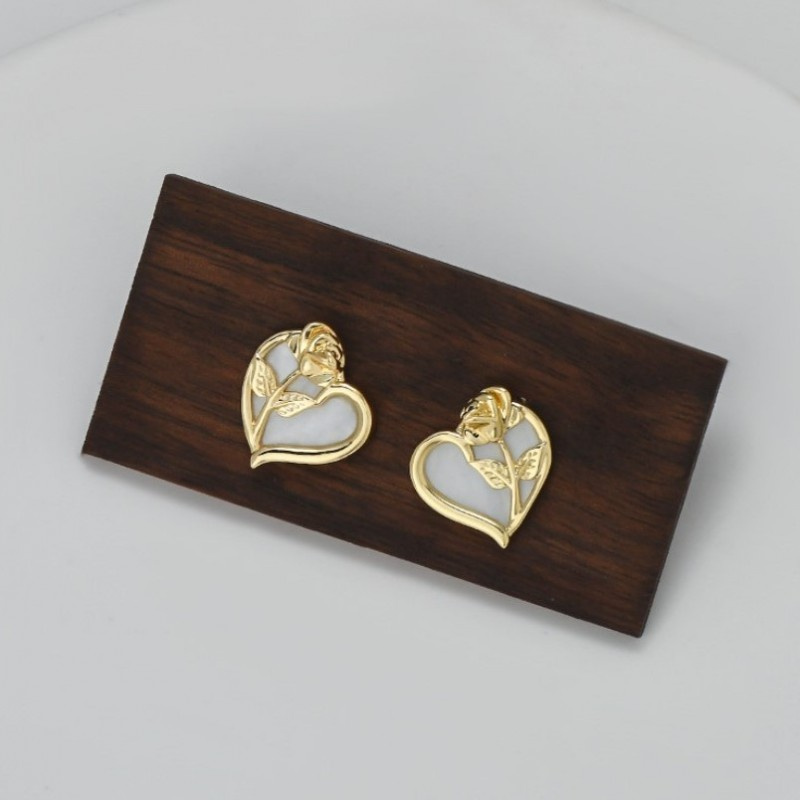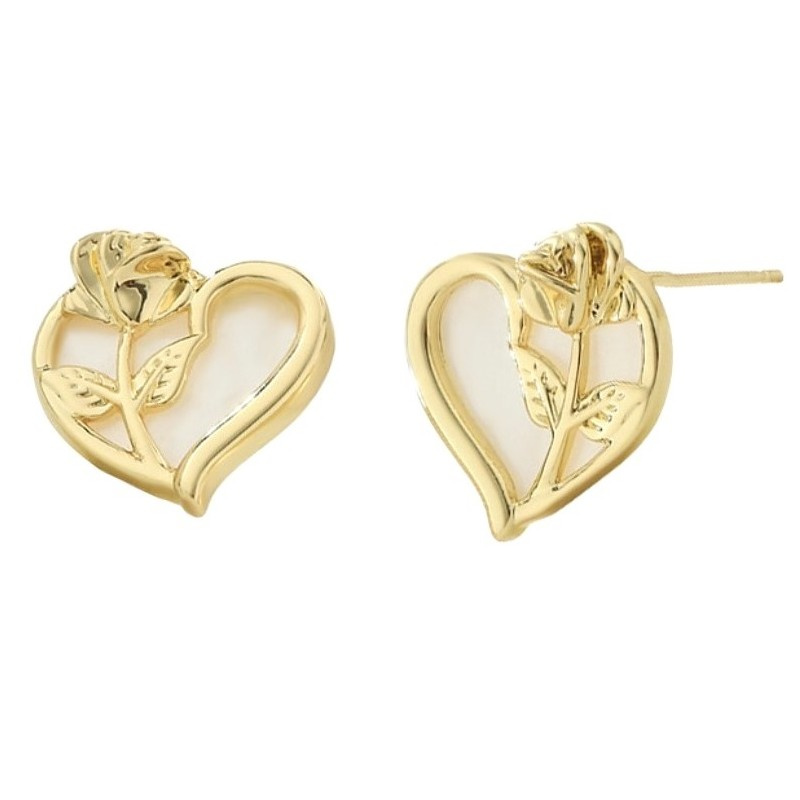 Kolczyki ze stali szlachetnej pozłacanej 14k złotem, SERCE RÓŻA sztyft srebro S925 KST3368