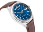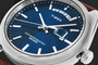 Głęboka, niebieska tarcza typu sunray zyskała elegancki charakter dzięki nakładanym indeksom, wskazaniu pełnej nazwy dnia tygodnia na godzinie 12 oraz powiększonemu okienku datownika przy godzinie 3.