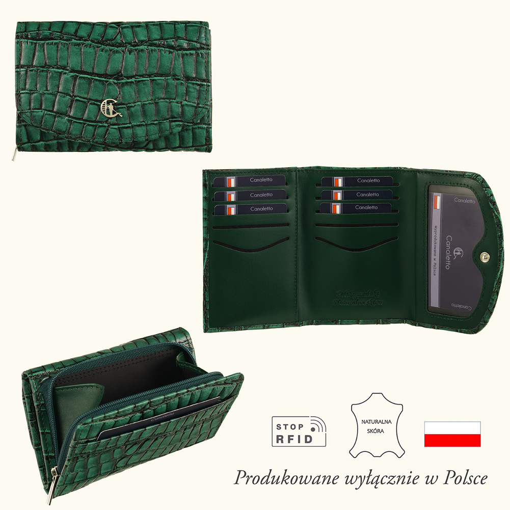 Damski portfel Canaletto ze skóry tłoczonej na wzór krokodyla to nie tylko modny dodatek – to wyraz Twojego stylu, dbałości o detale i zamiłowania do trwałych rozwiązań. Wybierz produkt, który spełnia najwyższe standardy – zarówno wizualne, jak i praktyczne.