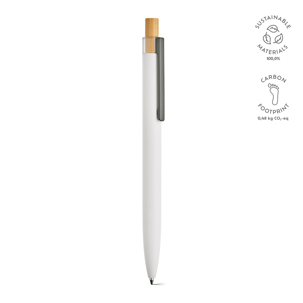 Ekologiczny długopis o przemyślanej konstrukcji z korpusem z aluminium pochodzącego z recyklingu i elementami z rPET i bambusa na górze. Posiada 1 km niebieskiego tuszu Dokumental®. Dostarczany w przyjaznym dla środowiska naturalnym pudełku typu kraft.