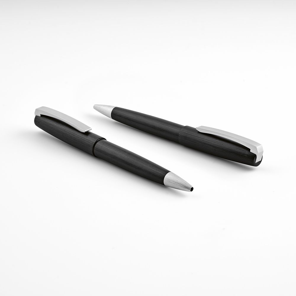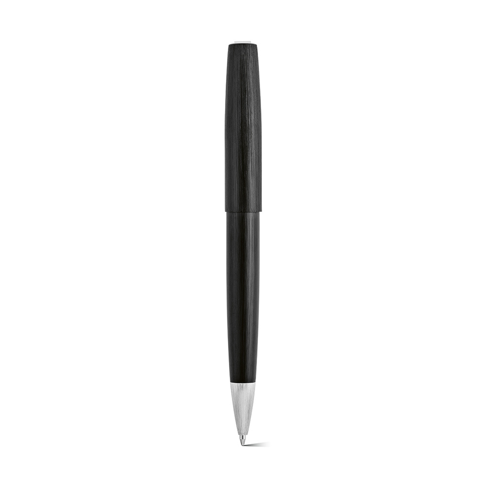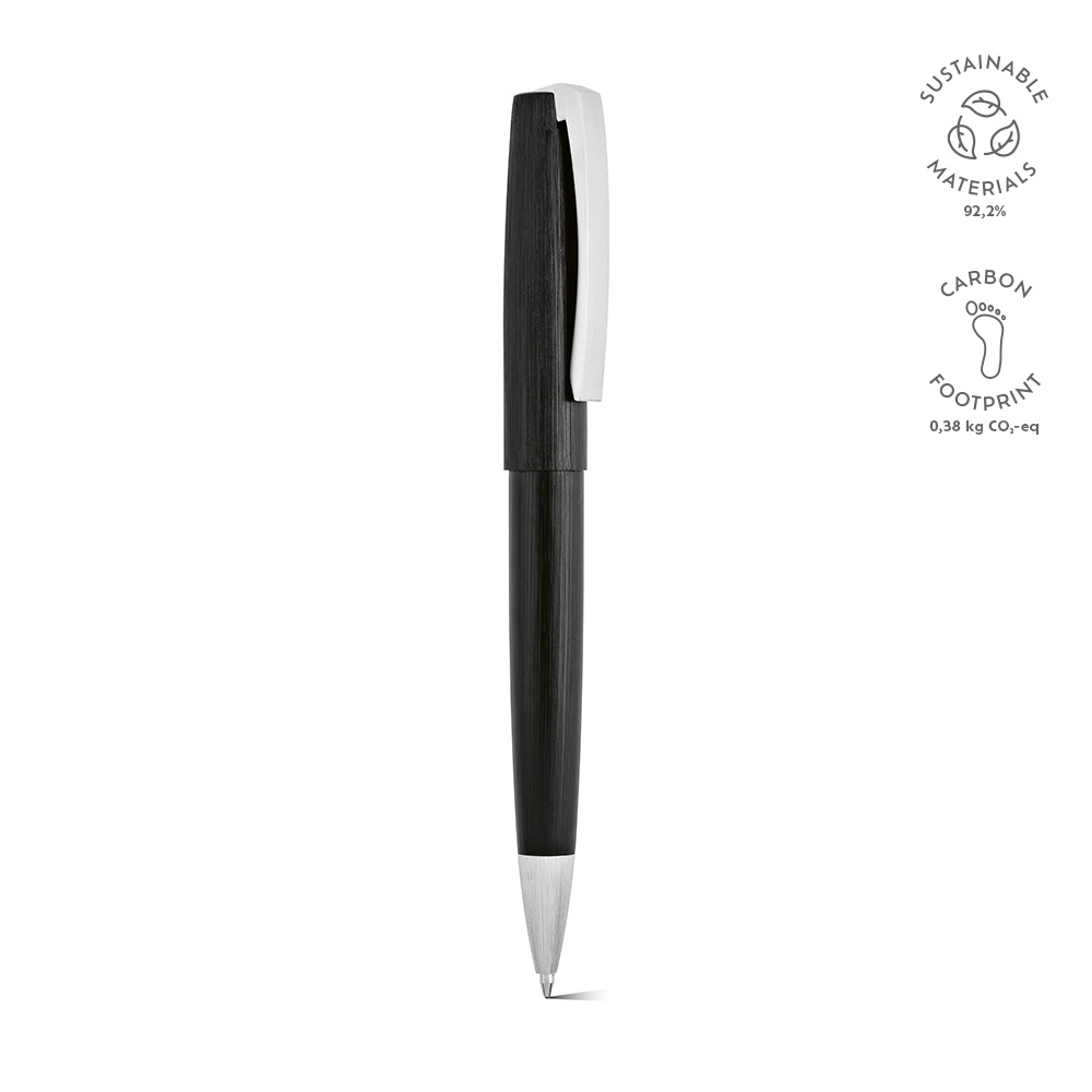 Wykonany z wytrzymałego aluminium pochodzącego z recyklingu, nasz długopis posiada unikalny mechanizm obrotowy na wibrującej końcówce. Korpus posiada pionowy efekt szczotkowania oraz srebrną końcówkę i klips. W opakowaniu znajduje się 2 km czarnego tuszu Dokumental® w ekologicznym kartonowym pudełku z recyklingu.