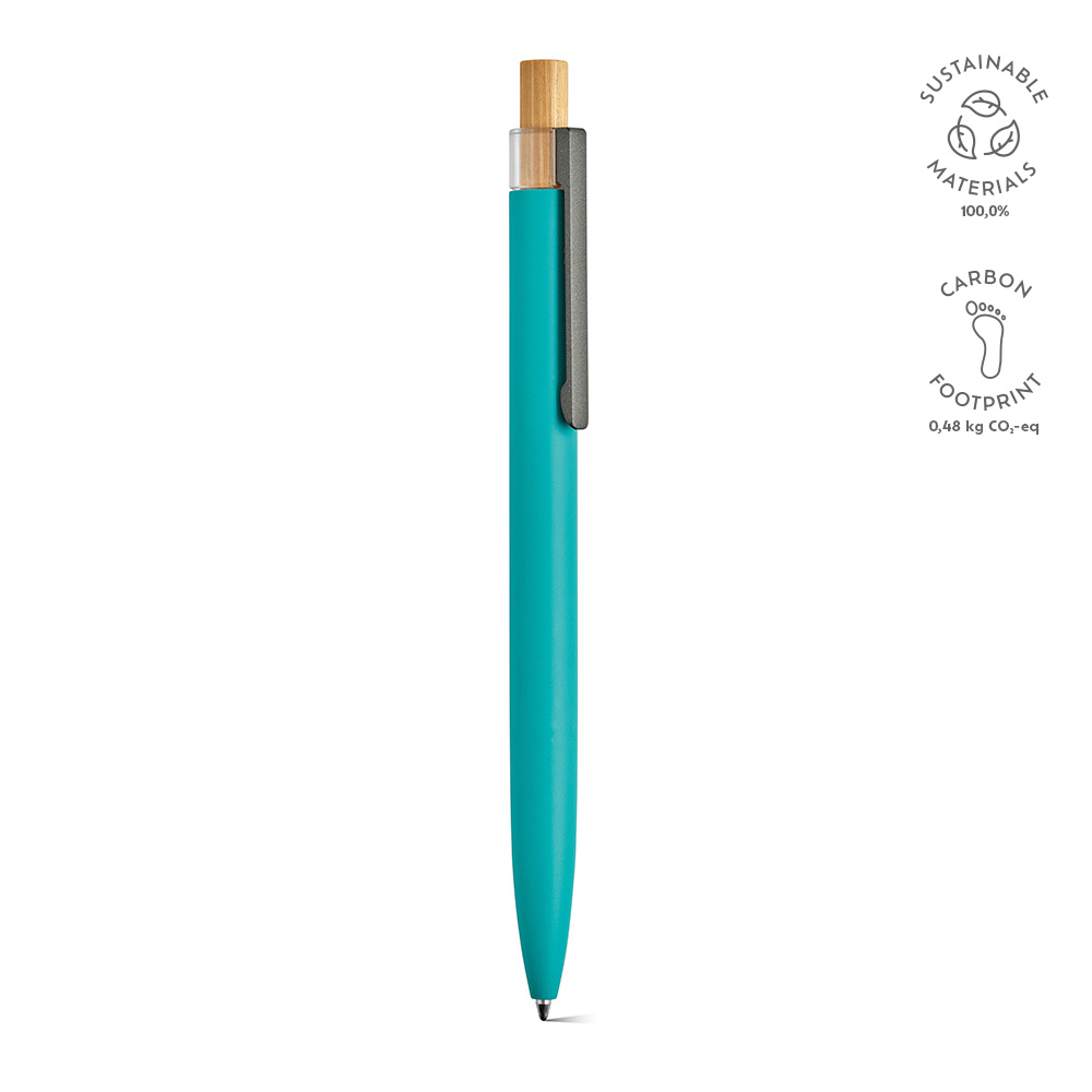 Ekologiczny długopis o przemyślanej konstrukcji z korpusem z aluminium pochodzącego z recyklingu i elementami z rPET i bambusa na górze. Posiada 1 km niebieskiego tuszu Dokumental®. Dostarczany w przyjaznym dla środowiska naturalnym pudełku typu kraft.