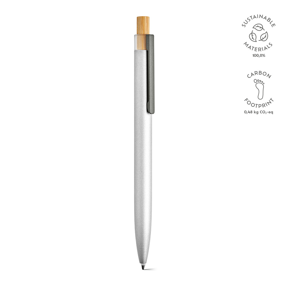 Ekologiczny długopis o przemyślanej konstrukcji z korpusem z aluminium pochodzącego z recyklingu i elementami z rPET i bambusa na górze. Posiada 1 km niebieskiego tuszu Dokumental®. Dostarczany w przyjaznym dla środowiska naturalnym pudełku typu kraft.