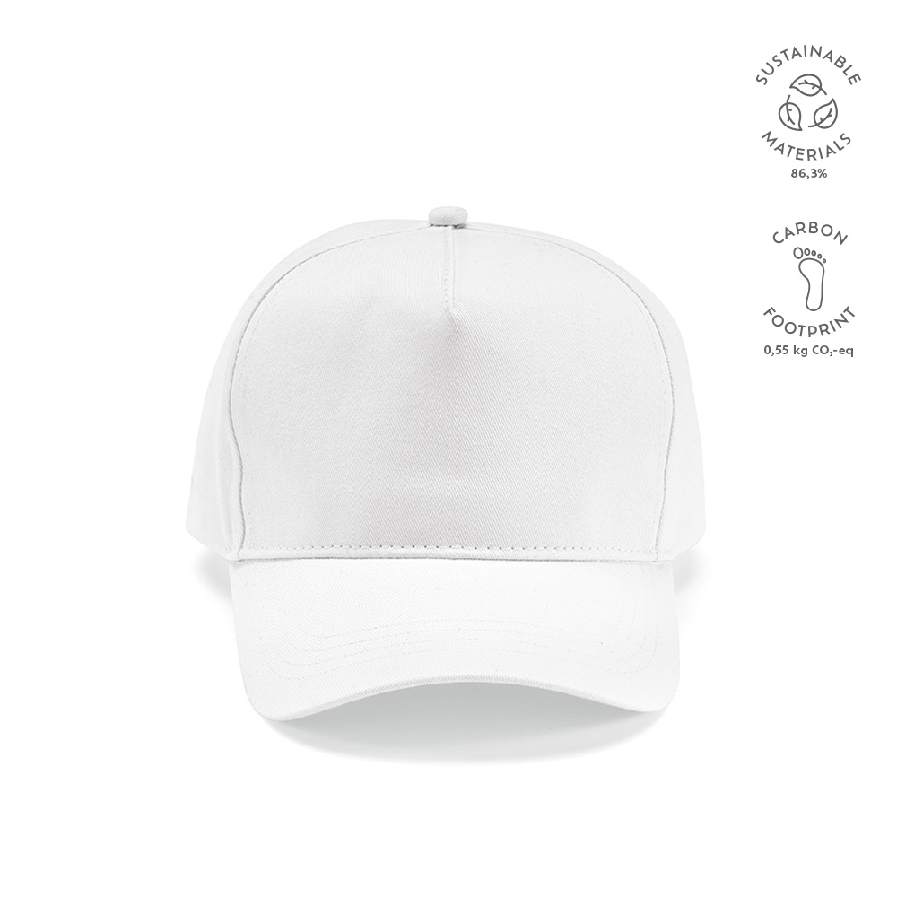 Ta czapka z bawełny pochodzącej z recyklingu o gramaturze 280 g/m² jest nie tylko stylowa, ale także uniwersalna na każdą okazję. Niezależnie od tego, czy jesteś na łonie natury czy w mieście, jest ona idealna do ochrony przed słońcem. Dzięki 5 panelom i regulowanemu zapięciu z tyłu zapewnia dokładne dopasowanie.