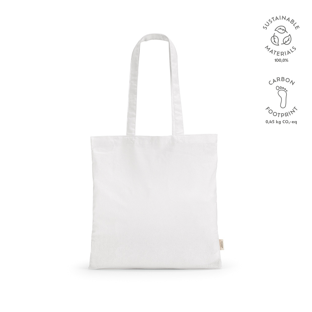 Wykonana w 70% z bawełny pochodzącej z recyklingu i w 30% z poliestru pochodzącego z recyklingu, ta lekka torba jest eko-bohaterem. Materiał o gramaturze 140 g/m², stylowe uchwyty o długości 65 cm i duże wymiary (11L). Żywe kolory rozjaśnią każdy dzień.