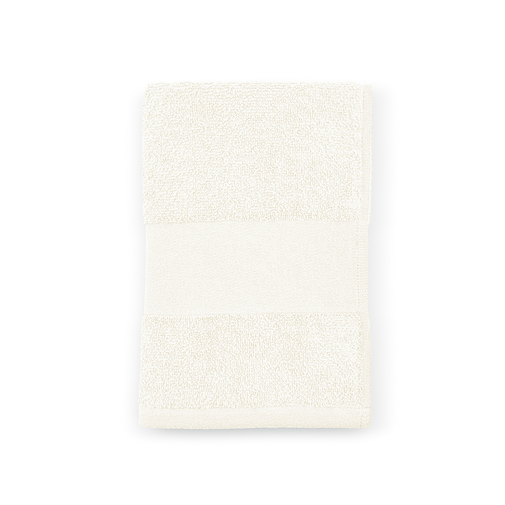 Użyj tego ręcznika frotte do twarzy o gramaturze 370 g/m², aby delikatnie oczyścić twarz: bawełna z recyklingu (60% bawełny z recyklingu i 40% bawełny) pozostawi skórę odświeżoną. Wyprodukowany w Portugalii, ma wymiary 30 x 50 cm i jest dostarczany z opaską z nadrukiem i bawełnianym wieszakiem; zapakowany w biodegradowalną torebkę foliową z recyklingu.