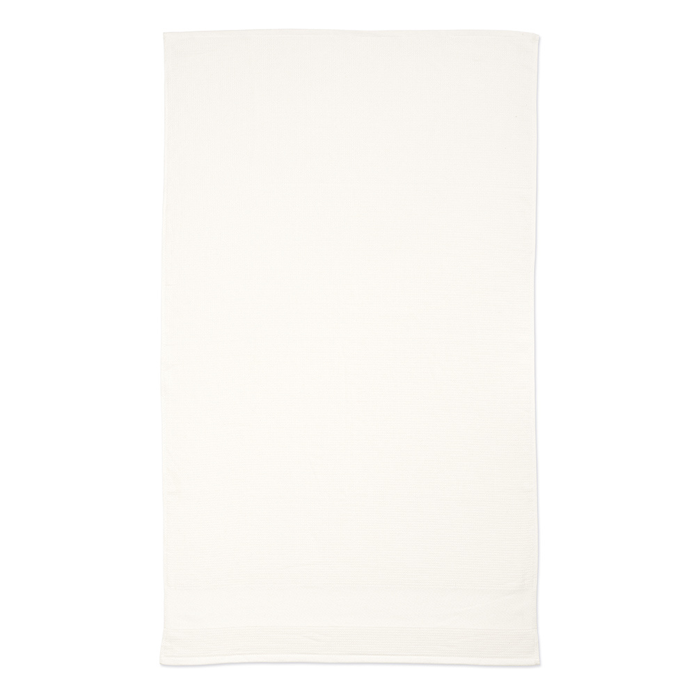 Otul się luksusem dzięki naszemu ręcznikowi waflowemu Made in Portugal z bawełny z recyklingu (60% bawełny z recyklingu i 40% bawełny). Ma gramaturę 500 g/m² i wymiary 90 x 150 cm, dzięki czemu idealnie sprawdzi się pod prysznicem. Posiada stylową opaskę z nadrukiem, poręczny bawełniany wieszak i ekologiczną biodegradowalną torebkę foliową.