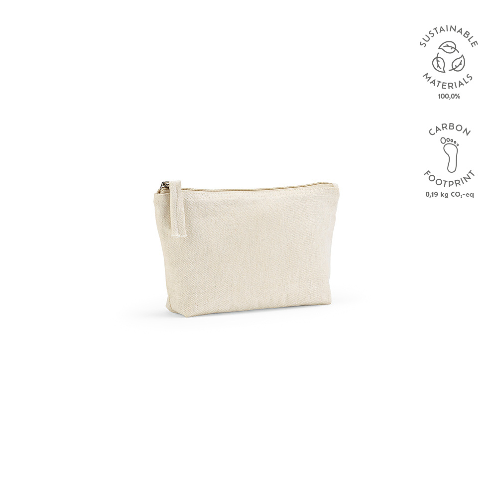 Naszą ekologiczna kosmetyczka wykonana (1,1L) z bawełny pochodzącej z recyklingu, której główna komora oferuje dużo miejsca do przechowywania, zabezpieczonego wygodnym zamkiem błyskawicznym. Stylowe i zrównoważone rozwiązanie dla niezbędnych akcesoriów podróżnych, zapewniające organizację i mniejszy wpływ na środowisko.