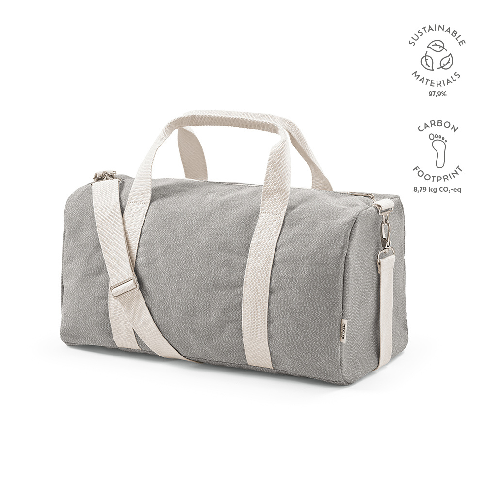 Doświadcz praktycznego luksusu z naszą torbą na siłownię, mieszanką bawełny z recyklingu (75%) i rPET (25%), karabińczykami do paska na ramię i wewnętrzną warstwą rPET. Całość zapakowana w torebkę PE z recyklingu.