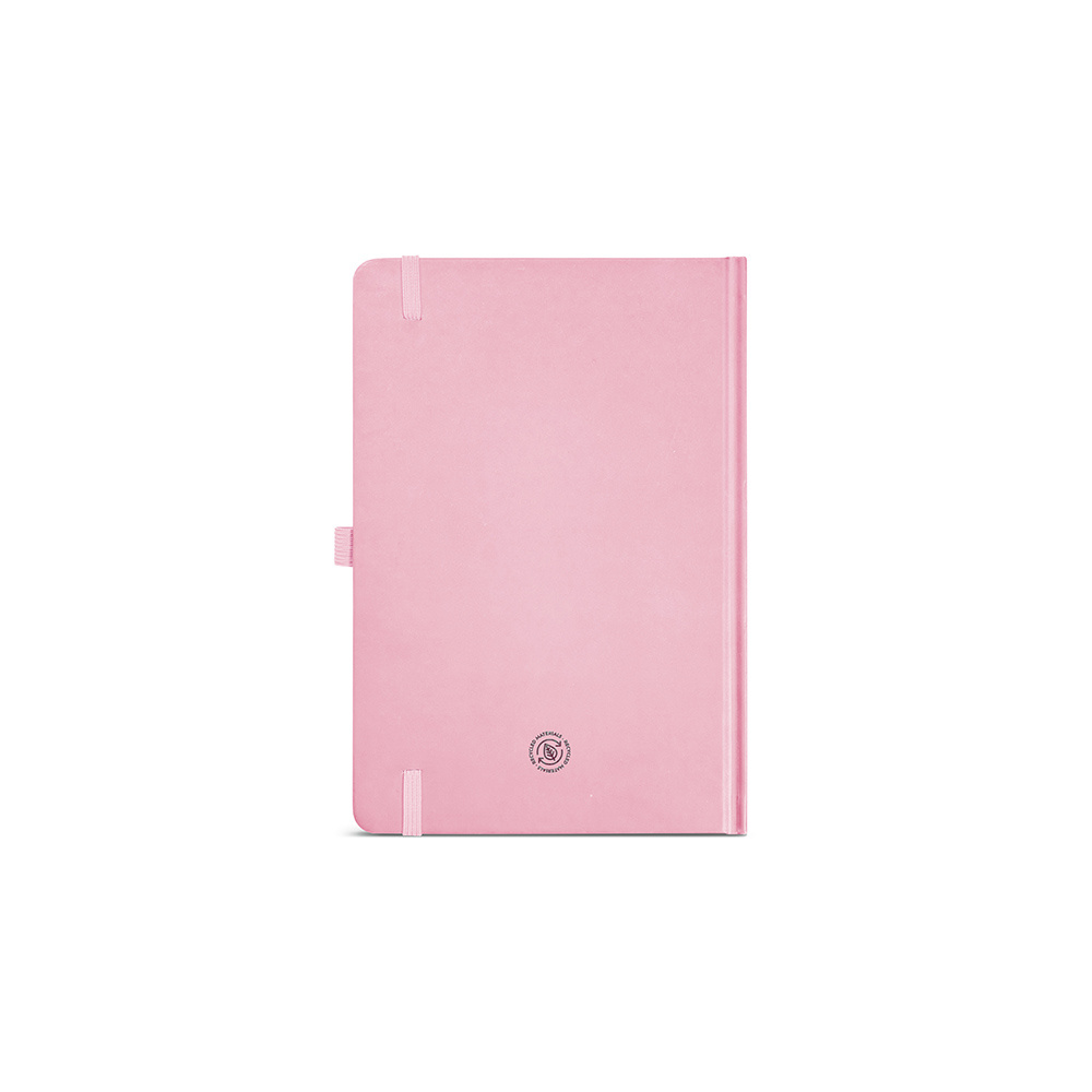 Nasz notatnik A5 ma okładkę z papieru pochodzącego z recyklingu i 196 stron w linie z kości słoniowej 70 gsm. Posiada wytrzymałą twardą okładkę, zaokrąglone rogi i wstążkową zakładkę. Posiada również elastyczne zamknięcie, rozszerzalną kieszeń i uchwyt na długopis.
