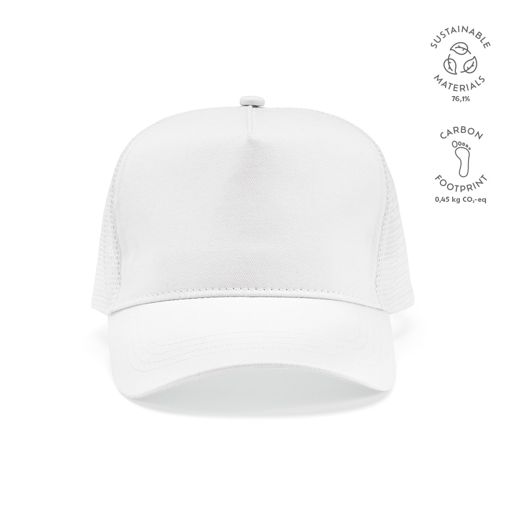 Doświadcz komfortu i zrównoważonego rozwoju w jednym dzięki naszej czapce z bawełny z recyklingu. Dzięki siateczce z tyłu wykonanej z rPET jest to oddychający wybór o gramaturze 220 g/m². Z pięcioma panelami i regulowanym zatrzaskiem z tyłu również wykonanym z rPET. Dostarczana w indywidualnej biodegradowalnej torebce foliowej.