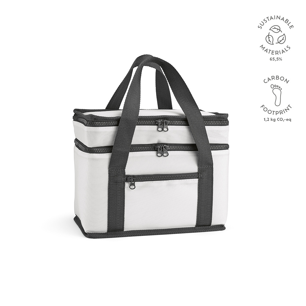 Odkryj wygodę dzięki naszej torbie chłodzącej: wykonanej z 600D rPET, wyposażonej w dwie przegrody, przednią kieszeń i zaawansowane termiczne zamki błyskawiczne dla optymalnego chłodzenia. Podnieś swoje doświadczenia na świeżym powietrzu dzięki stylowi i świadomości ekologicznej.