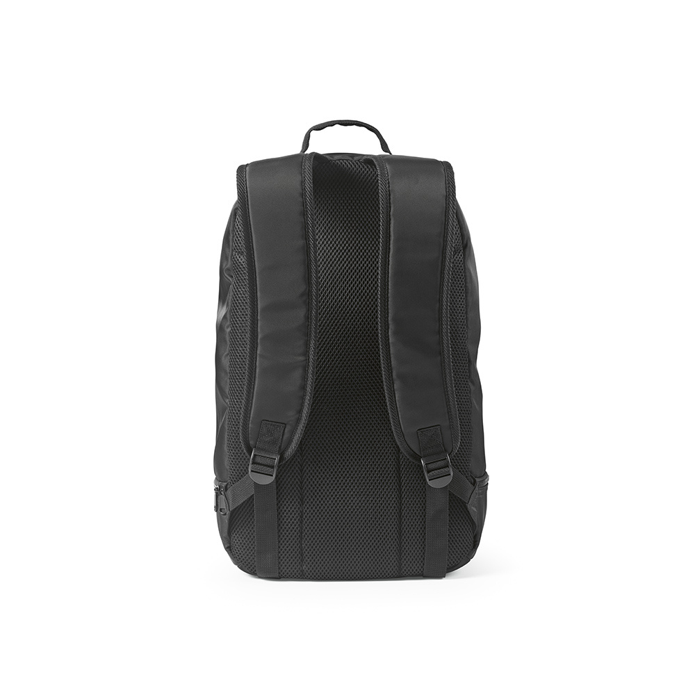 Wykonany z rPET, ten 25-litrowy plecak został zaprojektowany w oparciu o funkcjonalność. Z wyściółką pleców, wzmocnionym górnym uchwytem i dwoma czarnymi odblaskowymi paskami z przodu dla bezpieczeństwa. Na spodzie znajduje się oddzielna kieszeń idealna na buty. Projekt ukierunkowany na funkcjonalność.