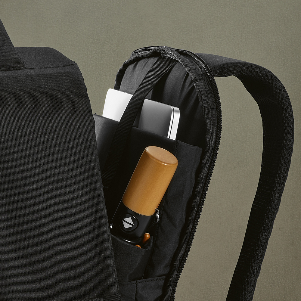 Odkryj komfort w naszym plecaku rPET 16L. Ukryta przednia kieszeń, wyściółka pleców, pasek do wózka, wzmocniony uchwyt i paski na ramiona. Wewnętrzna wyściełana przegroda na laptopa 17'' i dyskretne boczne kieszenie na butelki. Zapakowany w indywidualną bawełnianą torbę z recyklingu.
