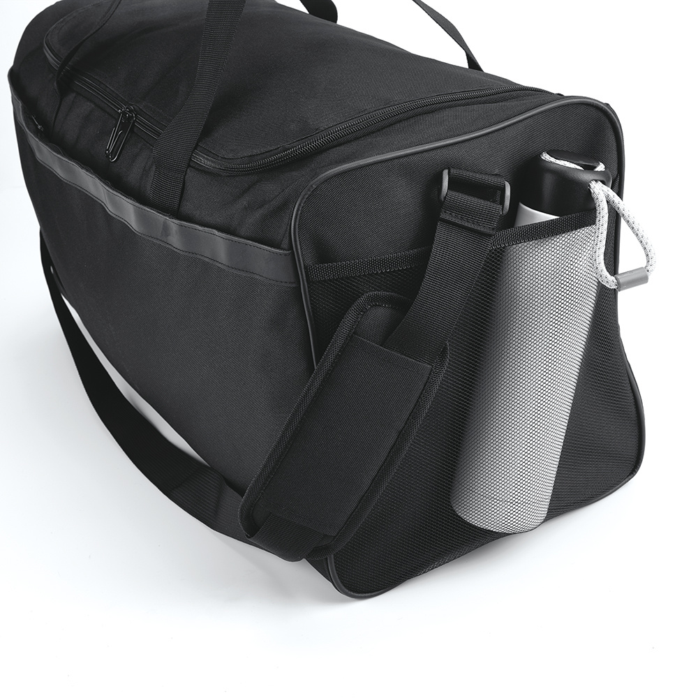 Uwolnij swój aktywny styl życia dzięki naszej wodoodpornej torbie gimnastycznej 600D rPET. Pojemna na 50 litrów, posiada regulowane wyściełane paski, odblaskowe czarne detale i boczne kieszenie. Całość zapakowana w torebkę PE z recyklingu.