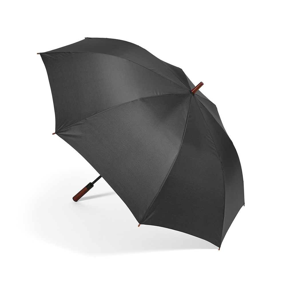 Przygotuj się na deszcz z naszym 32-calowym parasolem golfowym. Z panelami rPET, trzonem z włókna szklanego i żebrami, jest to wiatroodporny parasol z automatycznym otwieraniem. Można go zamknąć za pomocą pasującego kolorystycznie paska na rzep. Wygodny uchwyt z ciemnego drewna i indywidualny pokrowiec rPET.