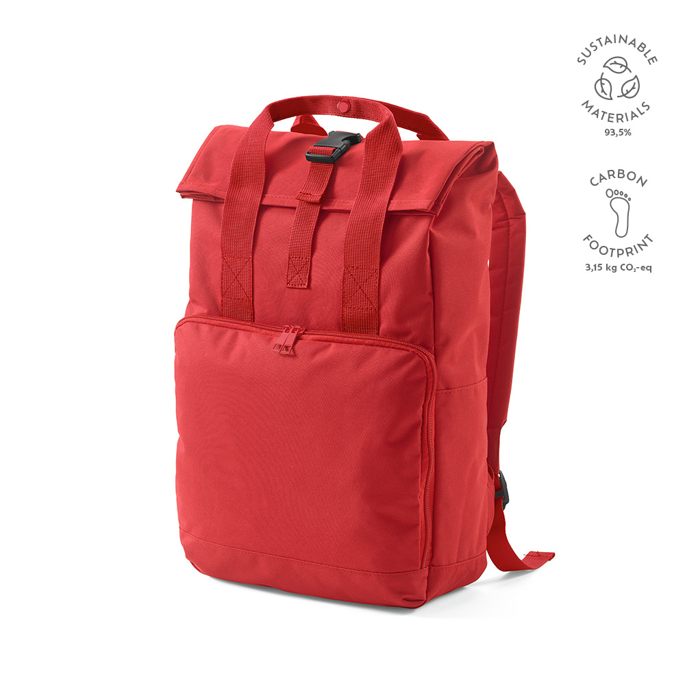 Poznaj miejską funkcjonalność dzięki naszemu plecakowi z recyklingu. Wykonany z 600D rPET, posiada przednią kieszeń i wygodne rolowane zamknięcie z klamrą. Wyściełany panel tylny zapewnia wygodę i efektywne przechowywanie niezbędnych rzeczy.