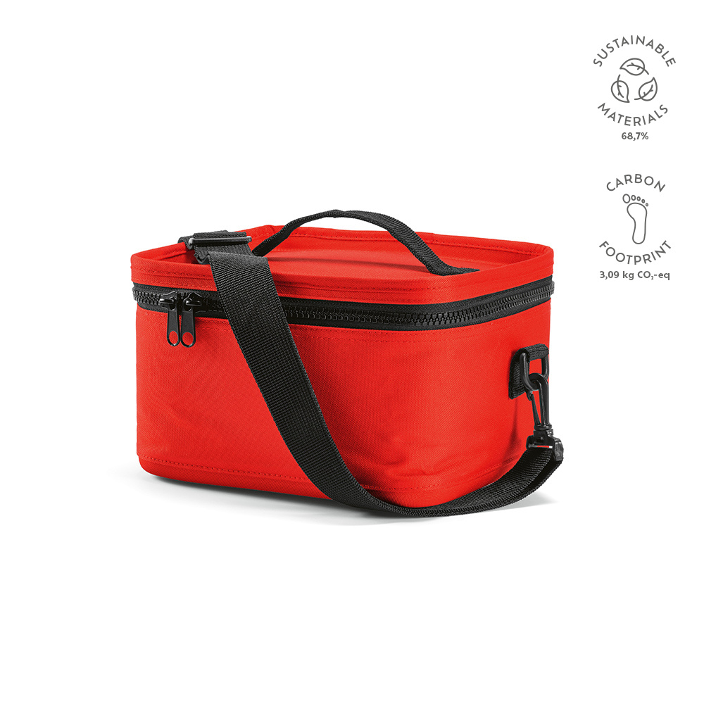 Nasza lodówka 600D rPET o pojemności 7,5 l zapewnia najwyższą wygodę. Wykonana z materiałów pochodzących z recyklingu, jest przyjaznym dla środowiska wyborem, a pojemna komora spełnia Twoje potrzeby, wspomagana przez dwa uchwyty. Przechowuj rzeczy w chłodzie, jednocześnie minimalizując swój wpływ na środowisko.